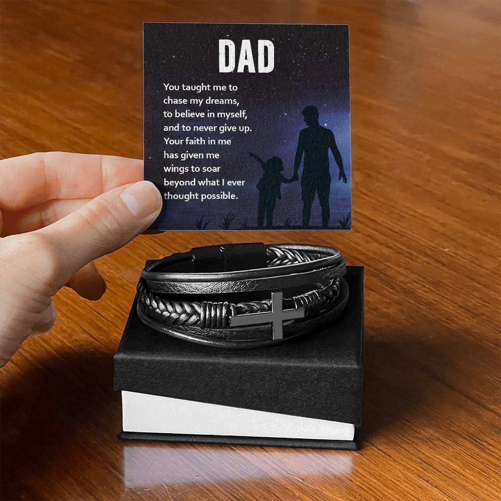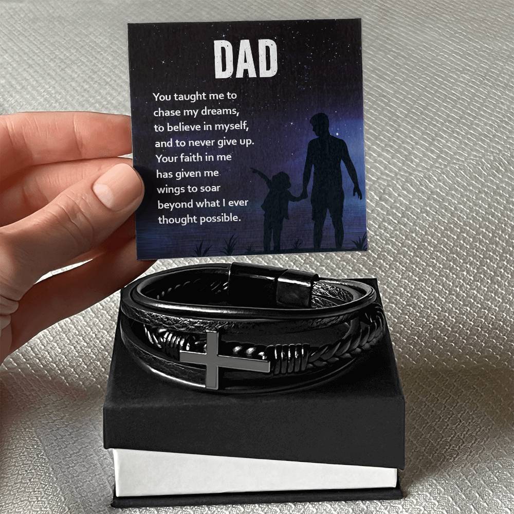 Best Gifts for Dad: Personalized Mens Cross Leather Bracelet Gift For Father On Birthday, Father’s Day, Christmas Present Keepsakes Message Card Jewelry For Him.