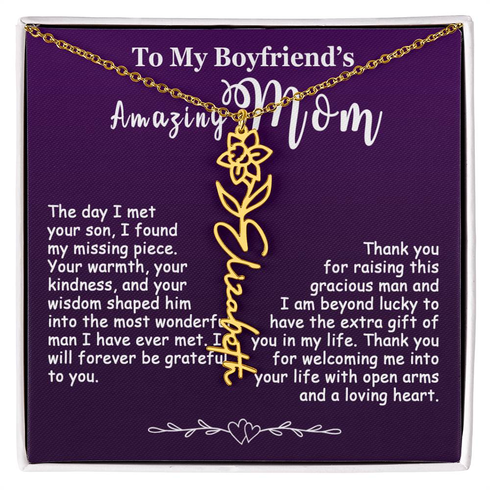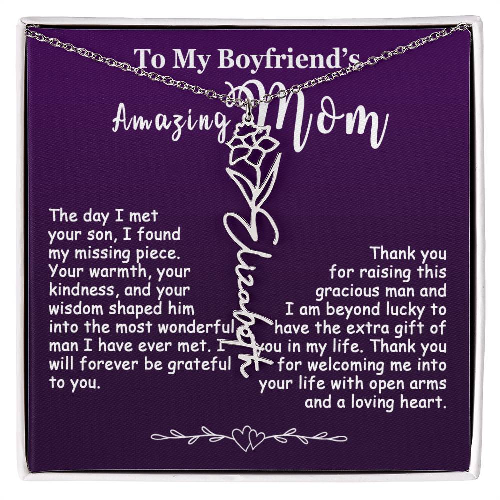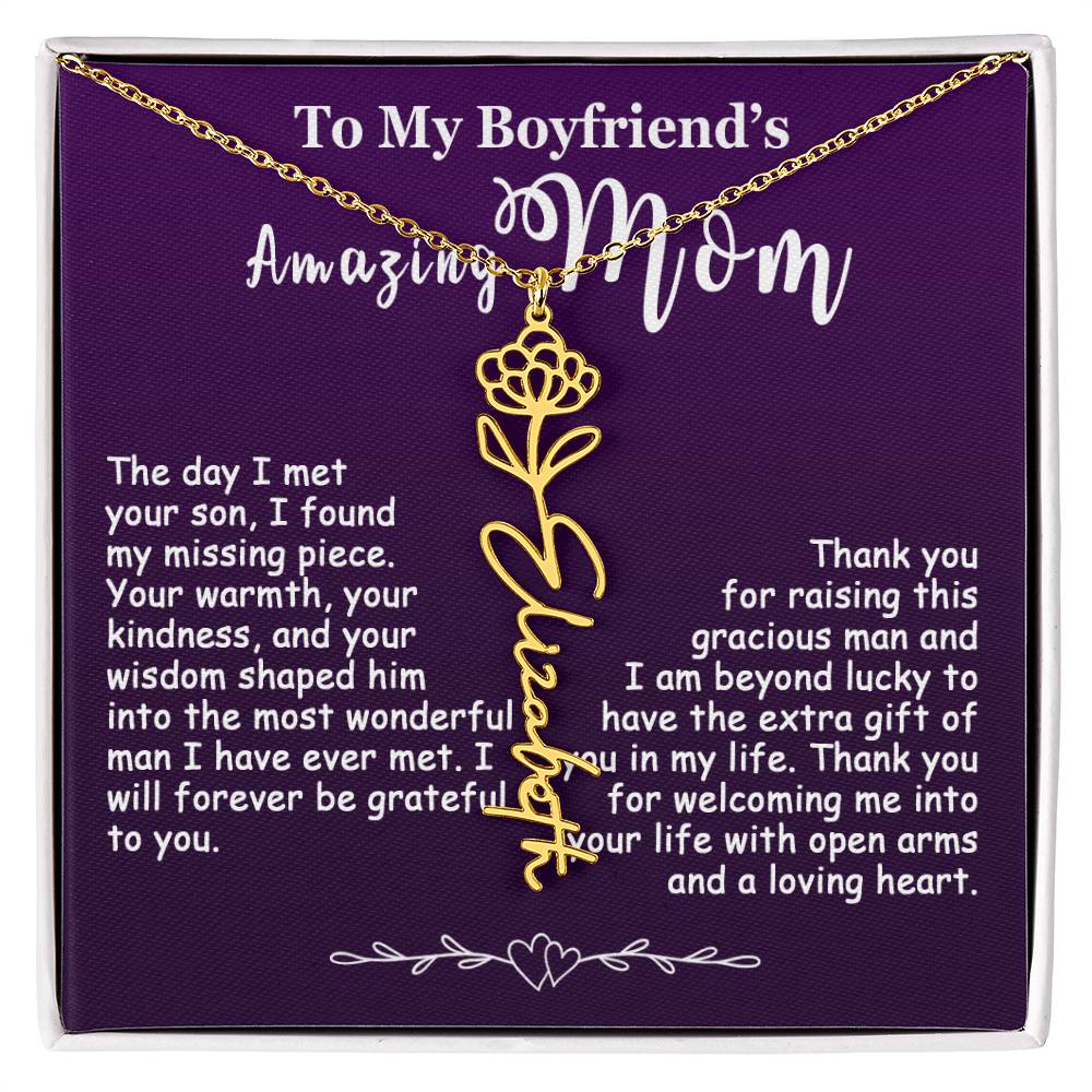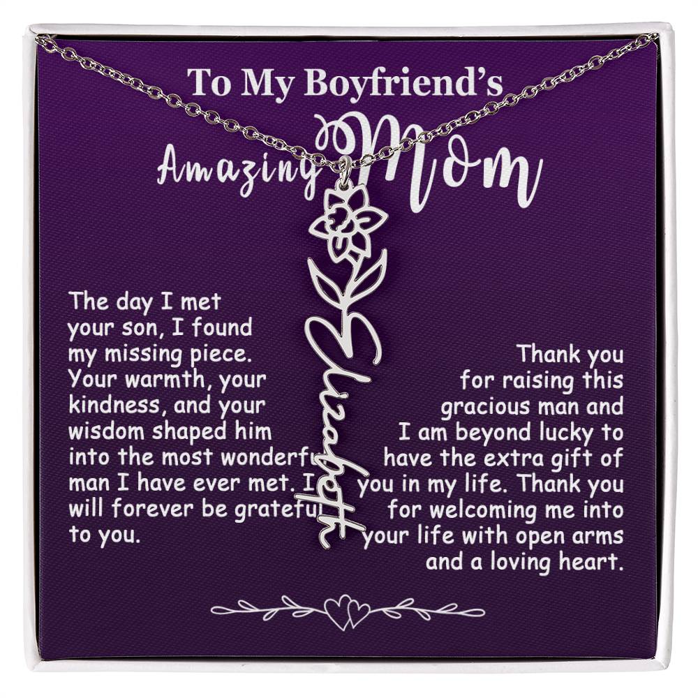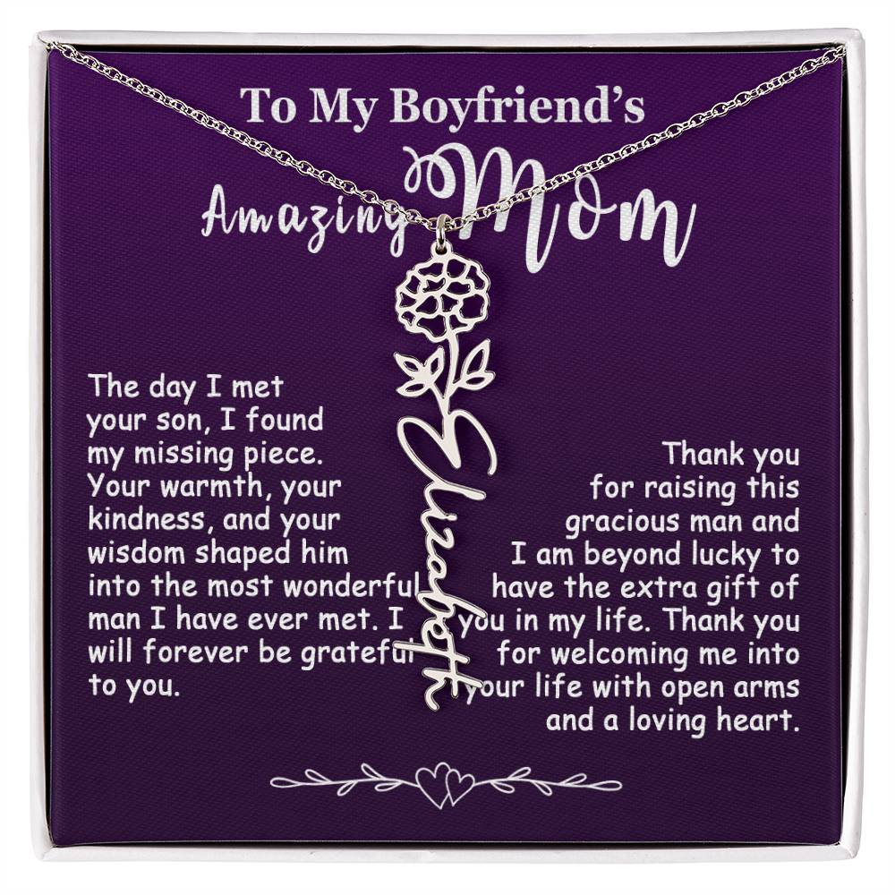 The Best Gift Idea: Personalized Flower Name Necklace, To My Boyfriend’s Mom On Birthday, Mother’s Day, Anniversary, or Christmas Gift For Her. This is the perfect gift to delight your special ones.