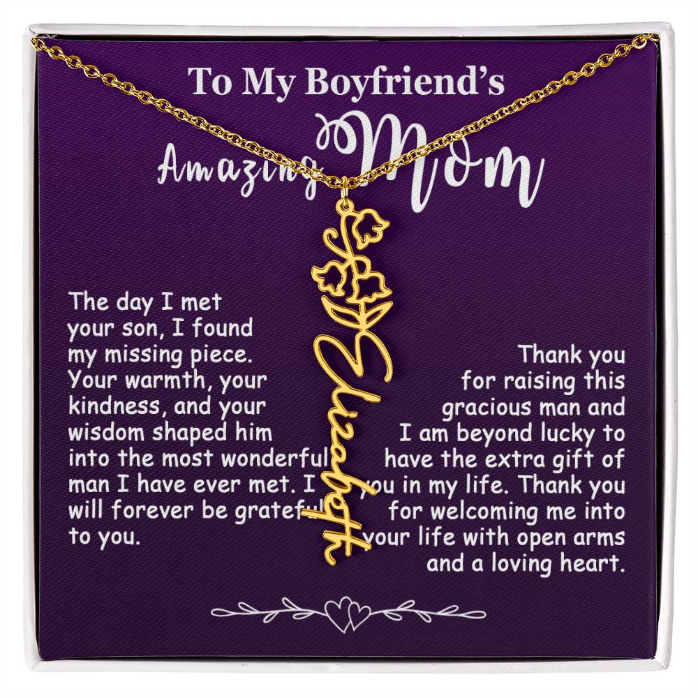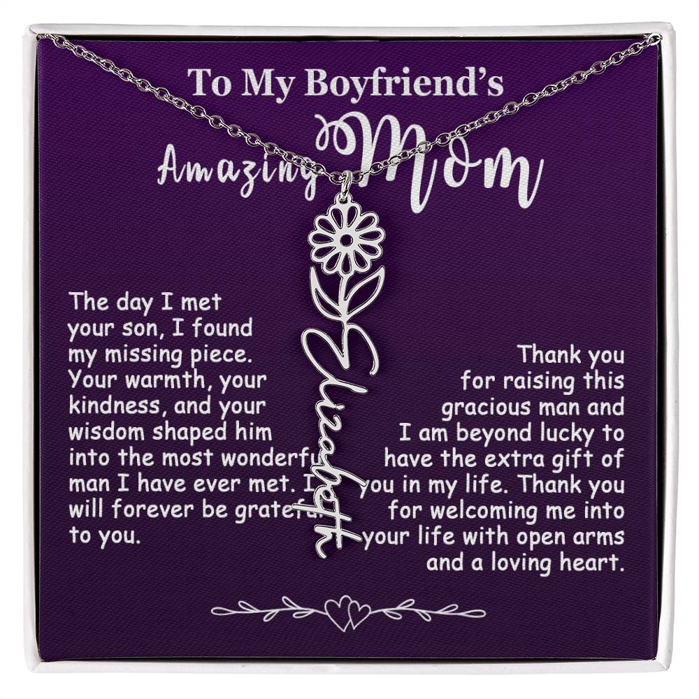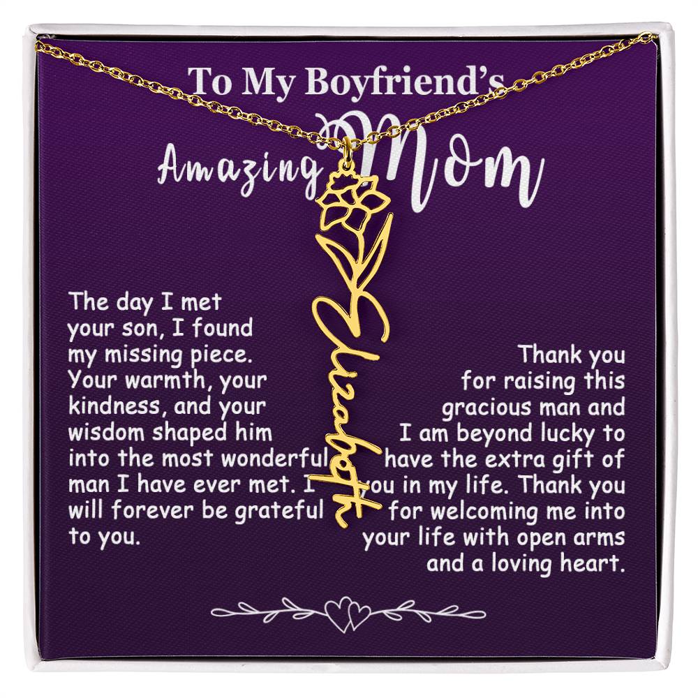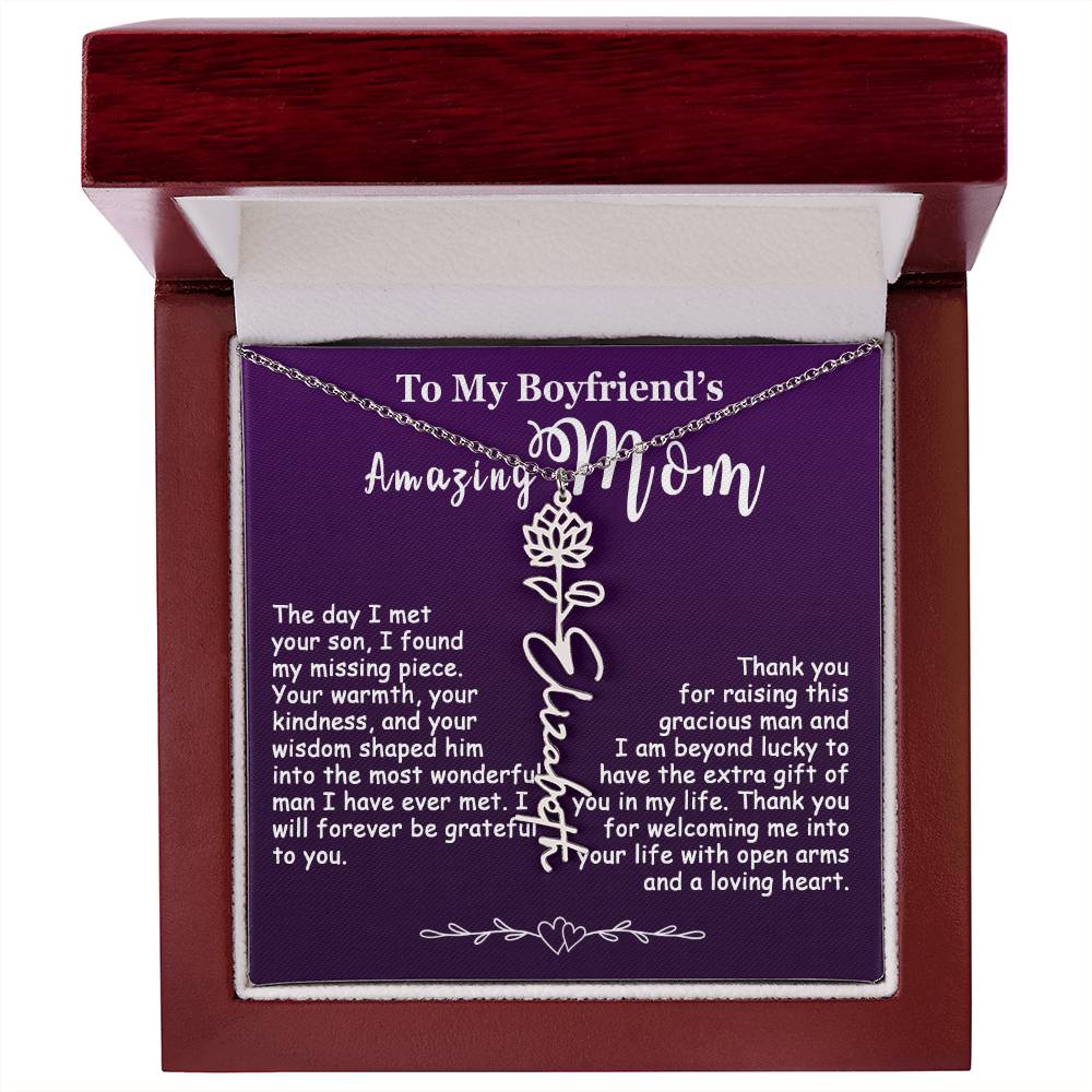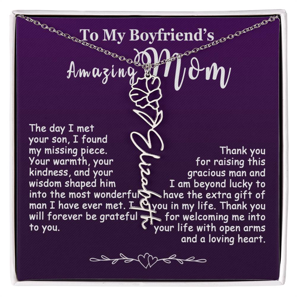 The Best Gift Idea: Personalized Flower Name Necklace, To My Boyfriend’s Mom On Birthday, Mother’s Day, Anniversary, or Christmas Gift For Her. This is the perfect gift to delight your special ones.