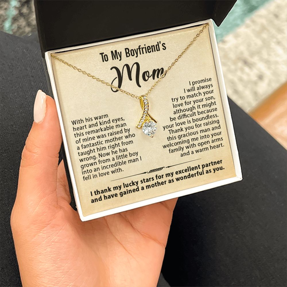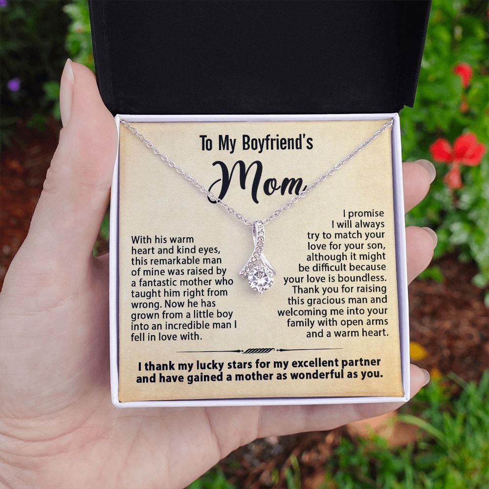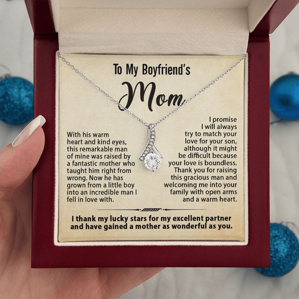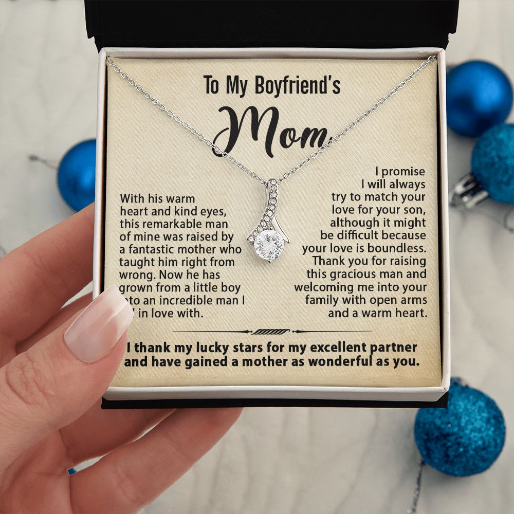 Best Gift For Boyfriend’s Mom – To My Boyfriend’s Mom Necklace, Mother’s Day Birthday Ideas, Love Knot Jewelry Message Card For BF’s MotherÂ