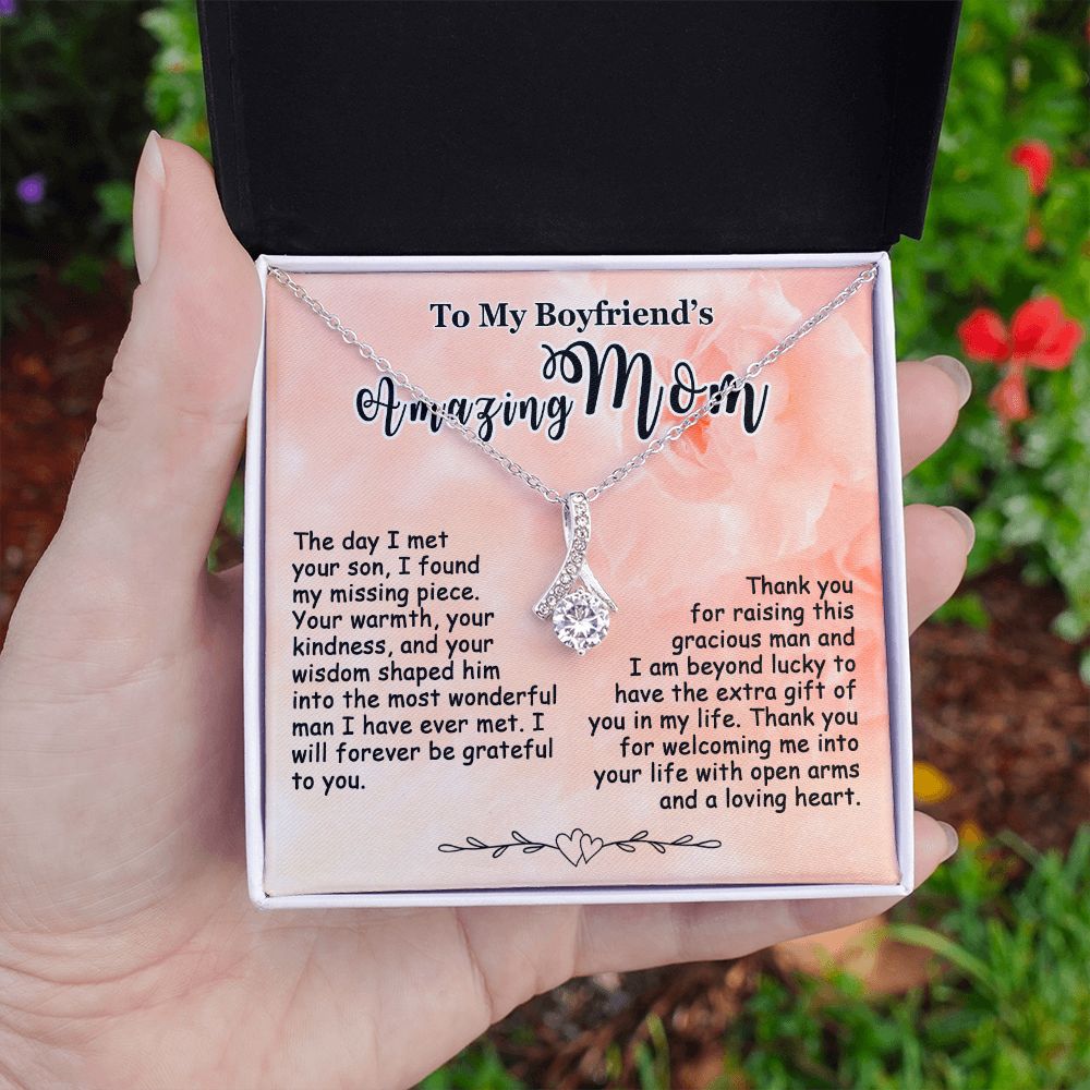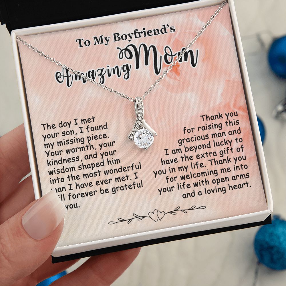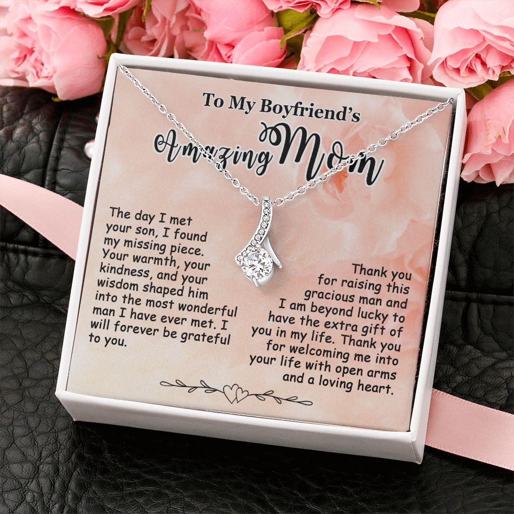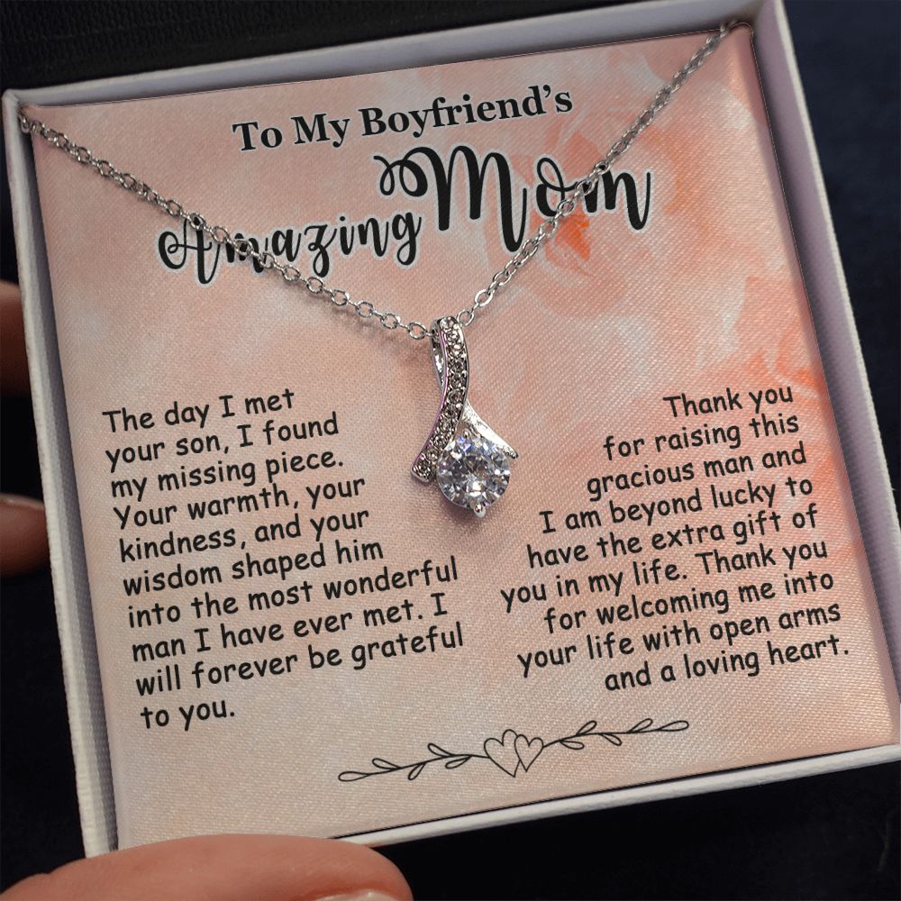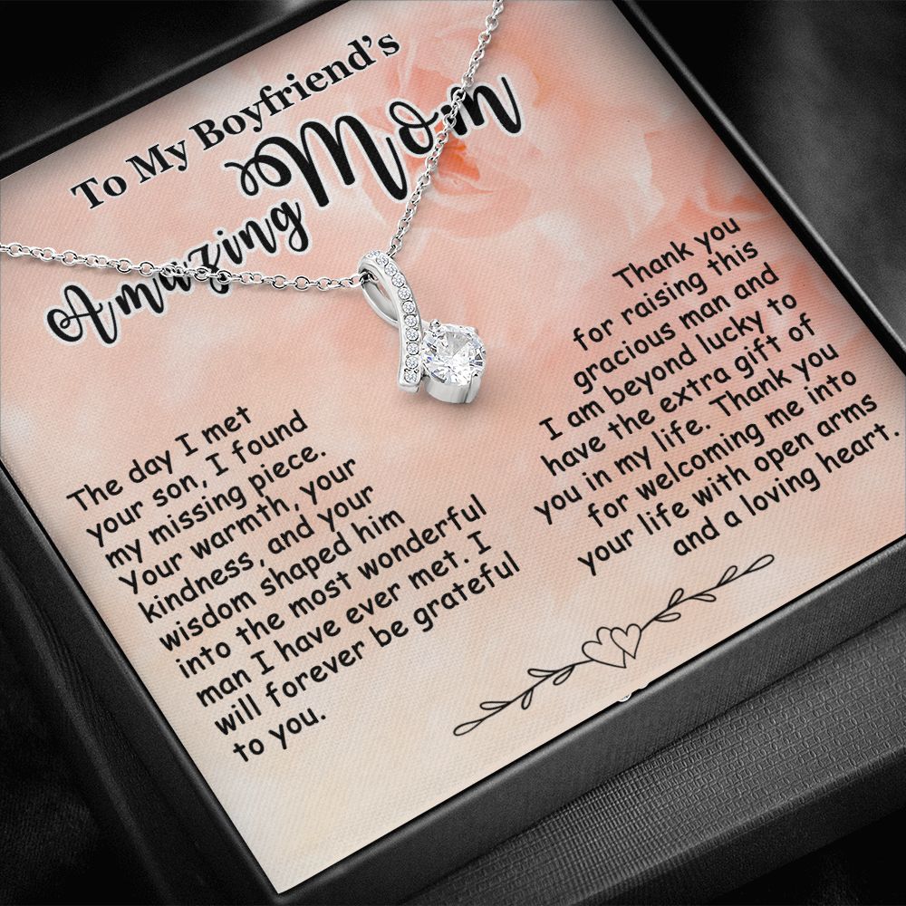 Gift for Boyfriend’s Mom, To My Boyfriend’s Mom Necklace, Mother’s Day & Birthday Ideas, Message Card Jewelry Present For BF’s Mother #e250