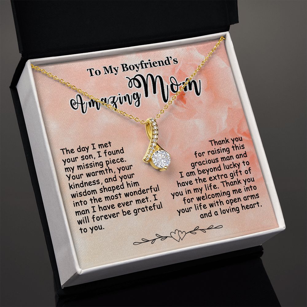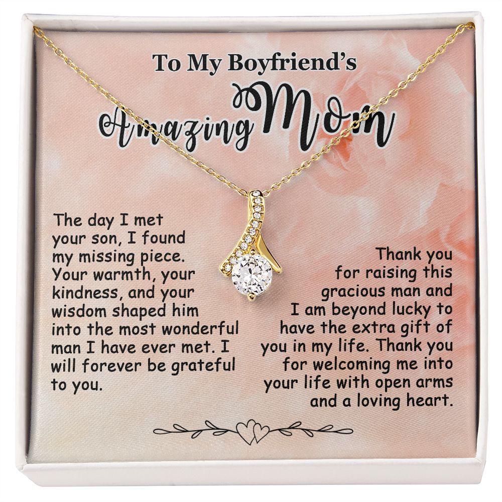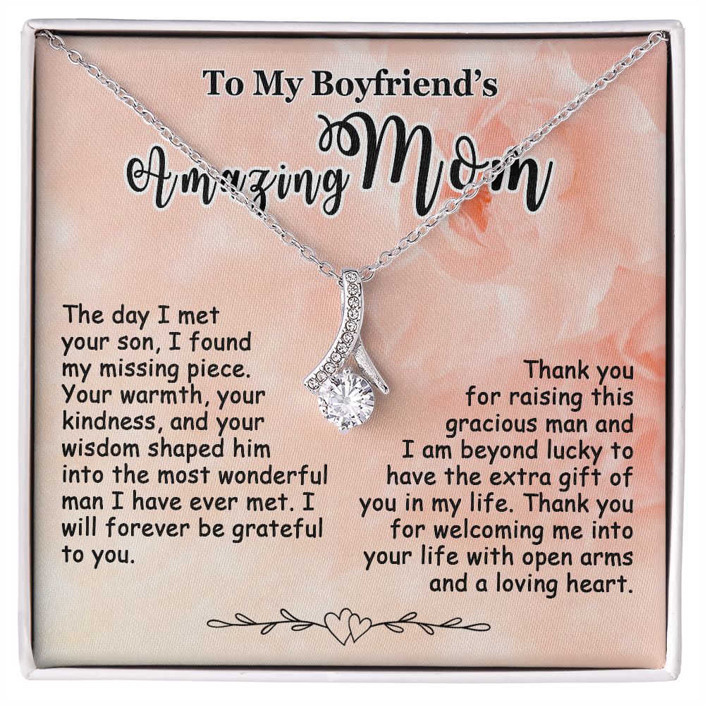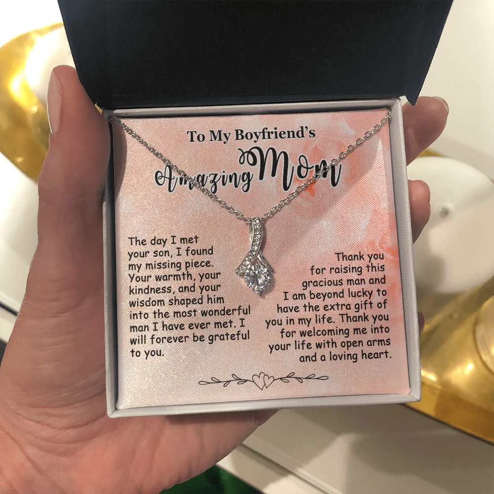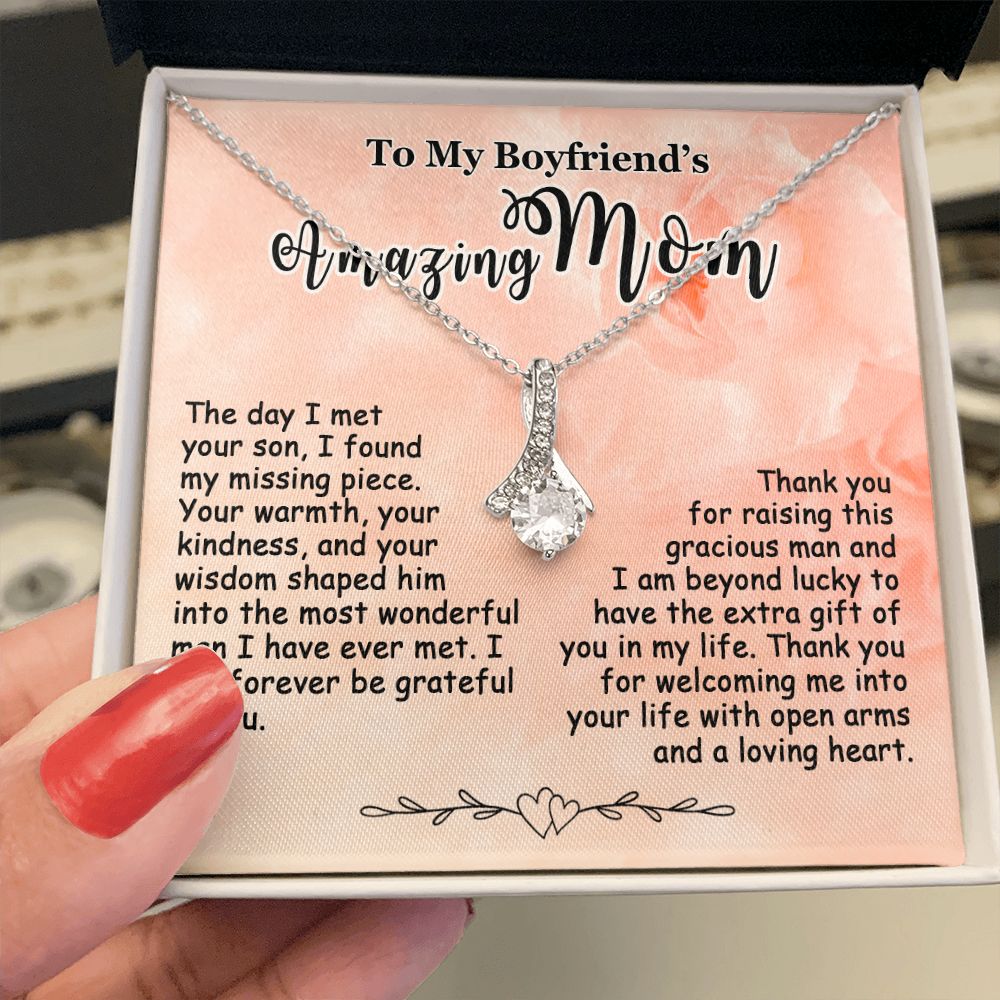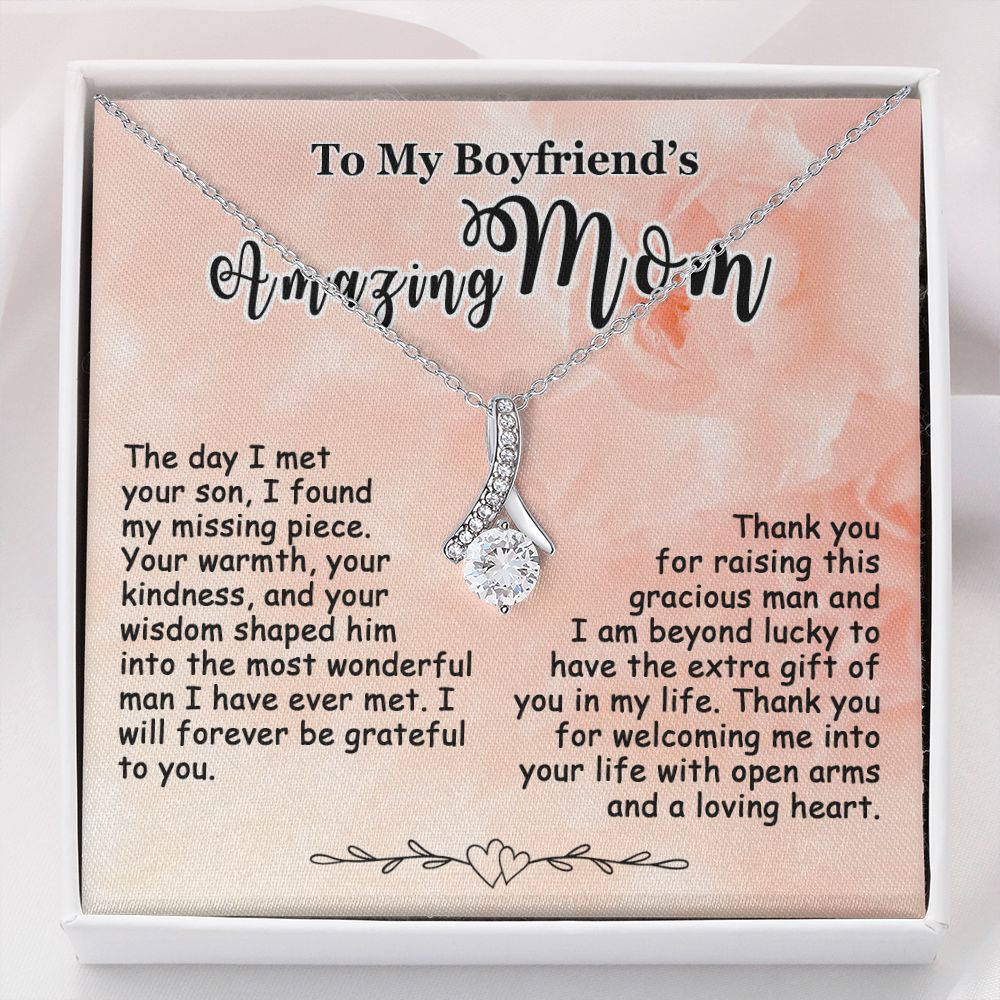 Gift for Boyfriend’s Mom, To My Boyfriend’s Mom Necklace, Mother’s Day & Birthday Ideas, Message Card Jewelry Present For BF’s Mother #e250