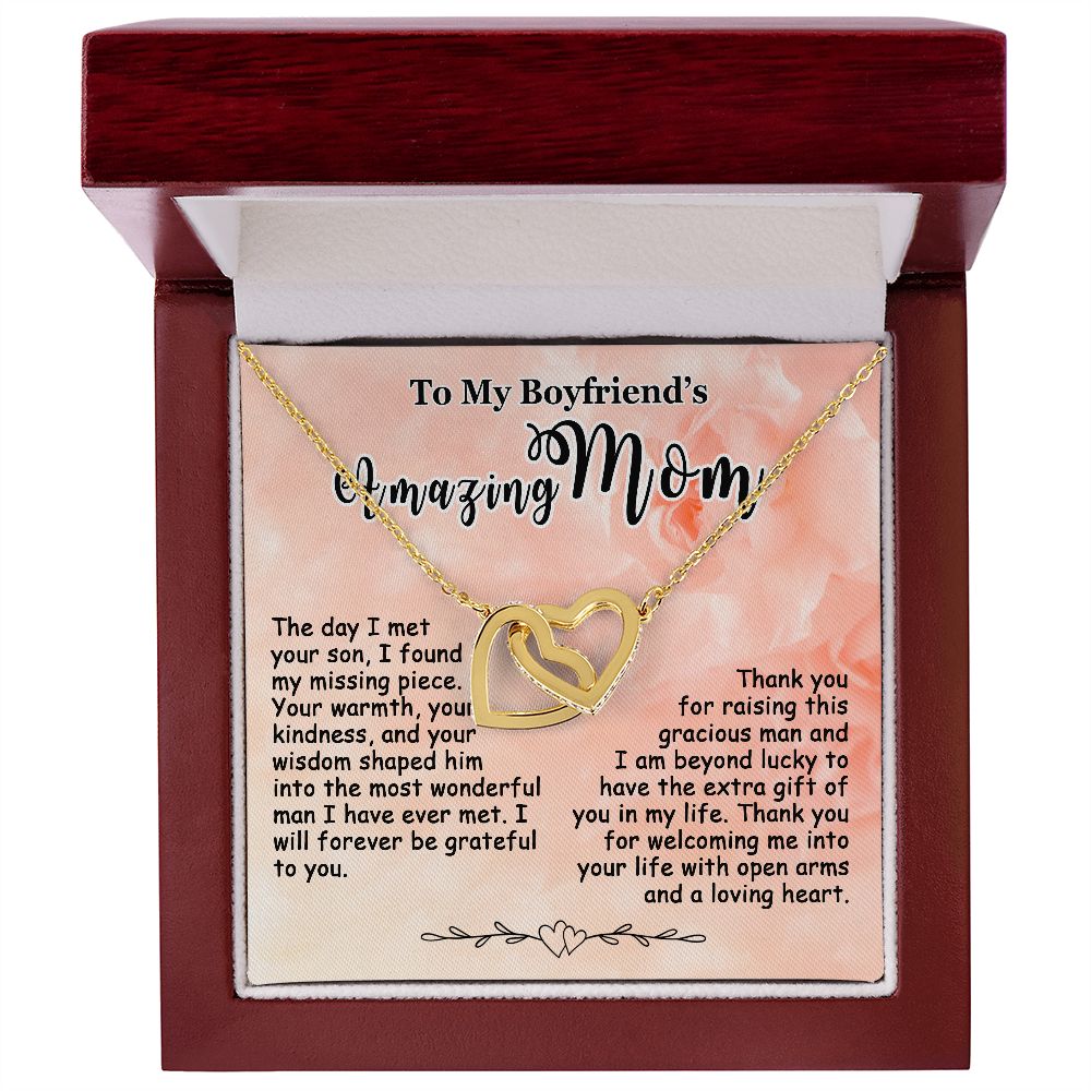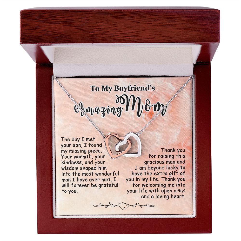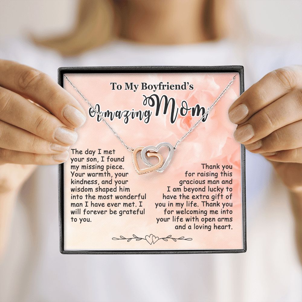 Gifts for Boyfriend’s Mom, To My Boyfriends Mom Necklace Gifts, Mother’s Day Gift Birthday Christmas Ideas For BF’s Mom, Interlocking Heart Pendants #e265
