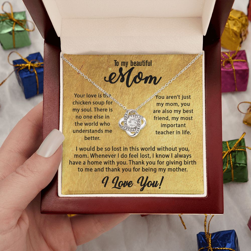 Imagine her reaction receiving this beautiful Love Knot Necklace. Representing an unbreakable bond between two souls, this piece features a beautiful pendant embellished with premium cubic zirconia crystals. Surprise your loved one with this gorgeous gift today!