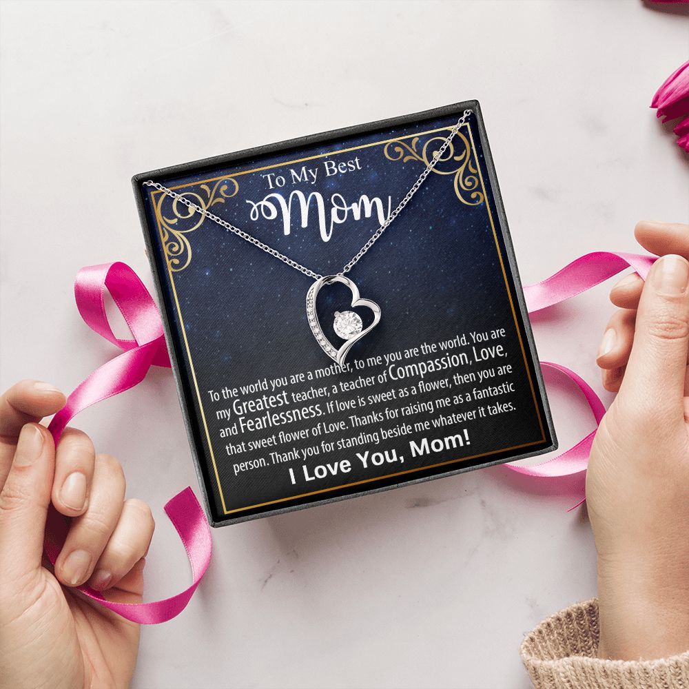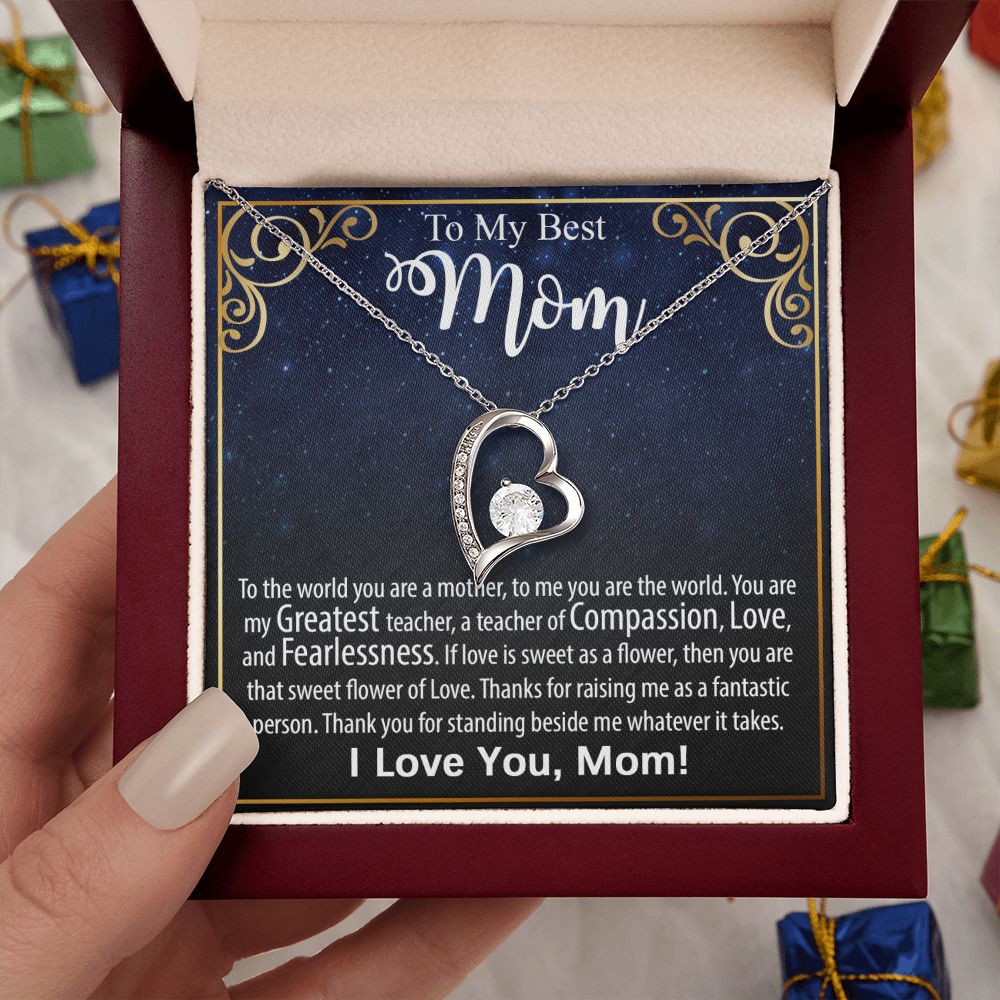 The dazzling Forever Love Necklace is sure to make her heart melt! This necklace features a stunning 6.5mm CZ crystal surrounded by a polished heart pendant embellished with smaller crystals to add extra sparkle and shine. Beautifully crafted with either a white gold or yellow gold finish, be sure to give her a classic gift she can enjoy everyday.