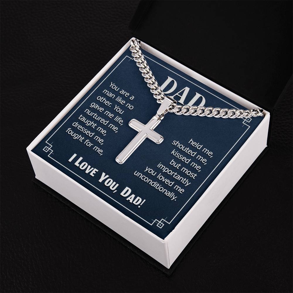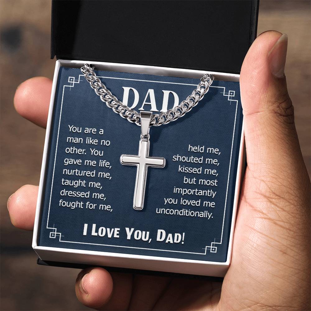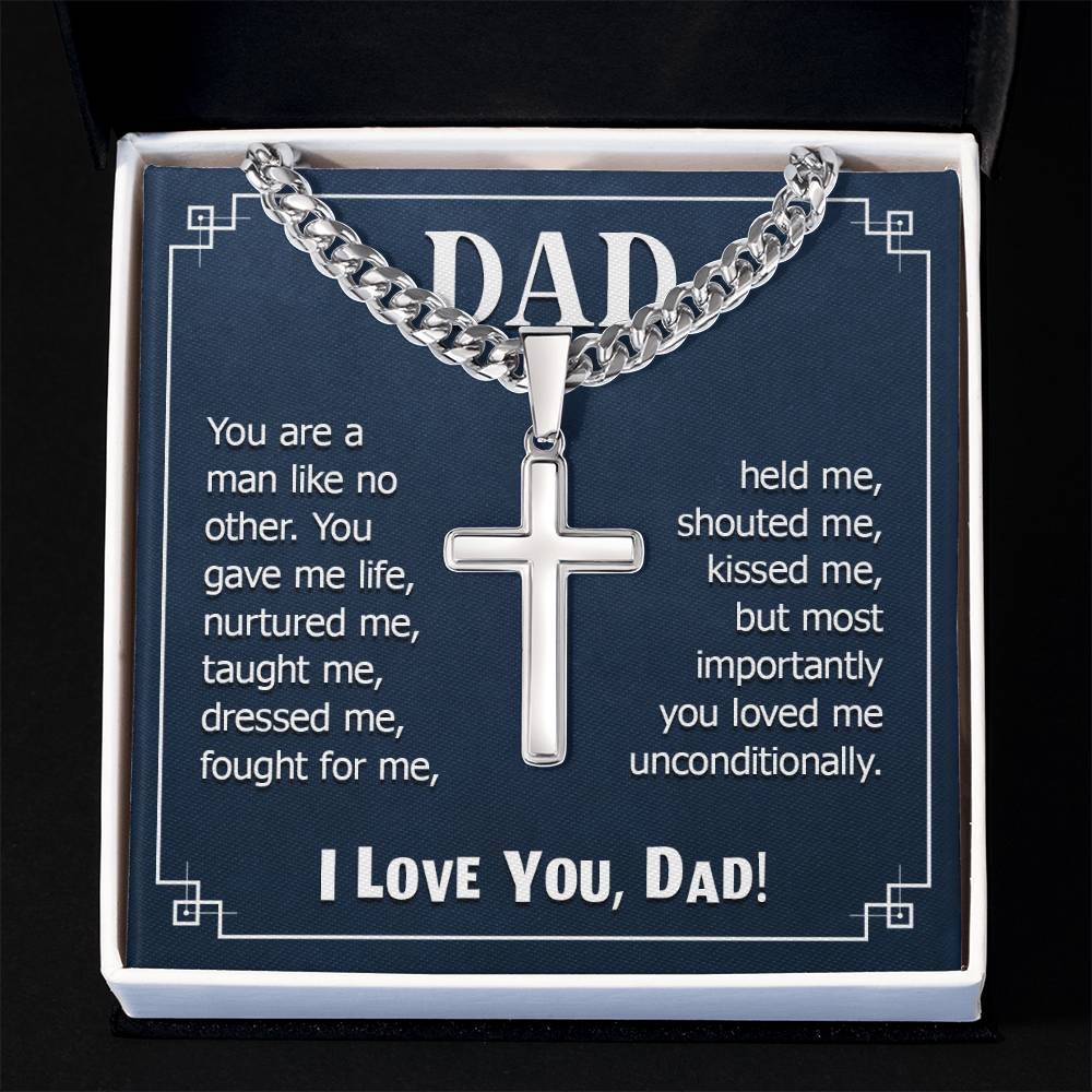The Best Dad Gift Idea: Personalized Engraved Cross Necklace On Cuban Link Chain To My Dad, Gift For Him on Birthday, Anniversary, Christmas Message Card Jewelry, is the perfect gift to delight your special ones.