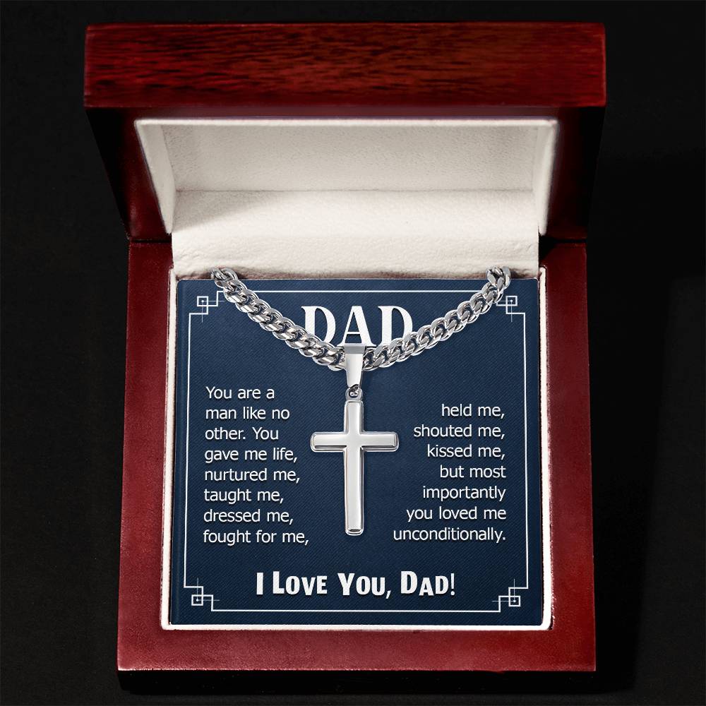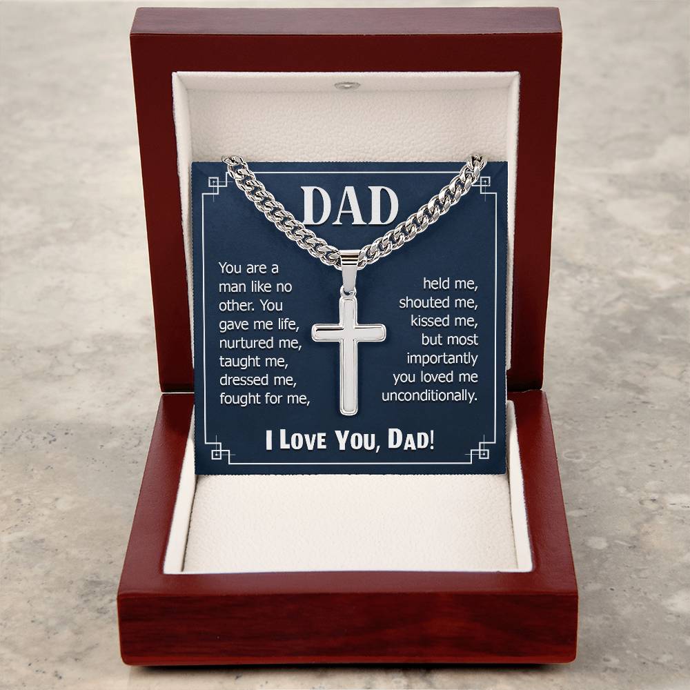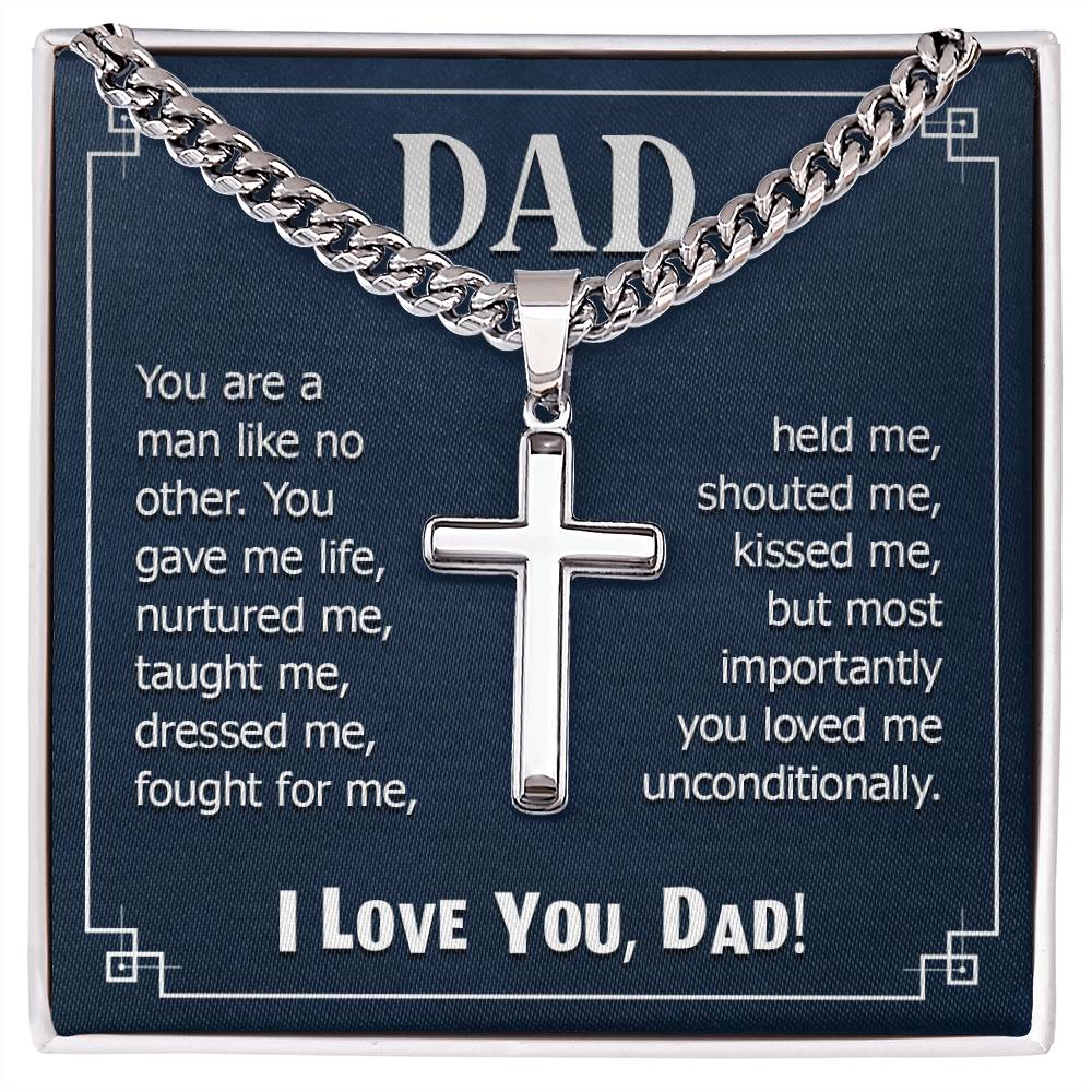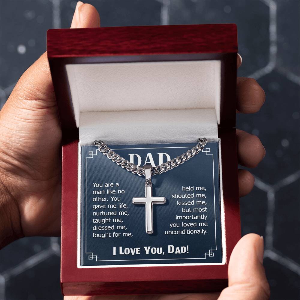 The Best Dad Gift Idea: Personalized Engraved Cross Necklace On Cuban Link Chain To My Dad, Gift For Him on Birthday, Anniversary, Christmas Message Card Jewelry, is the perfect gift to delight your special ones.