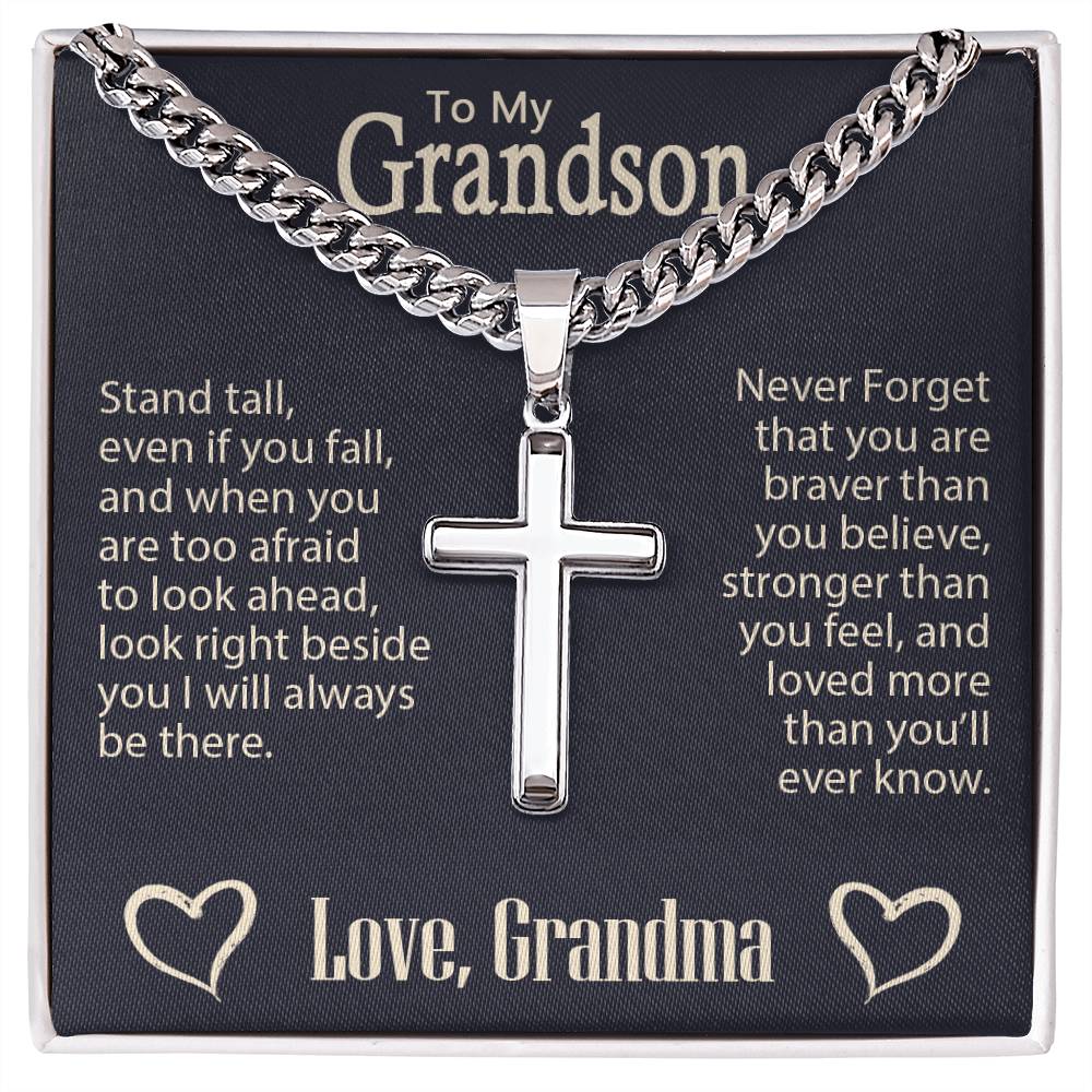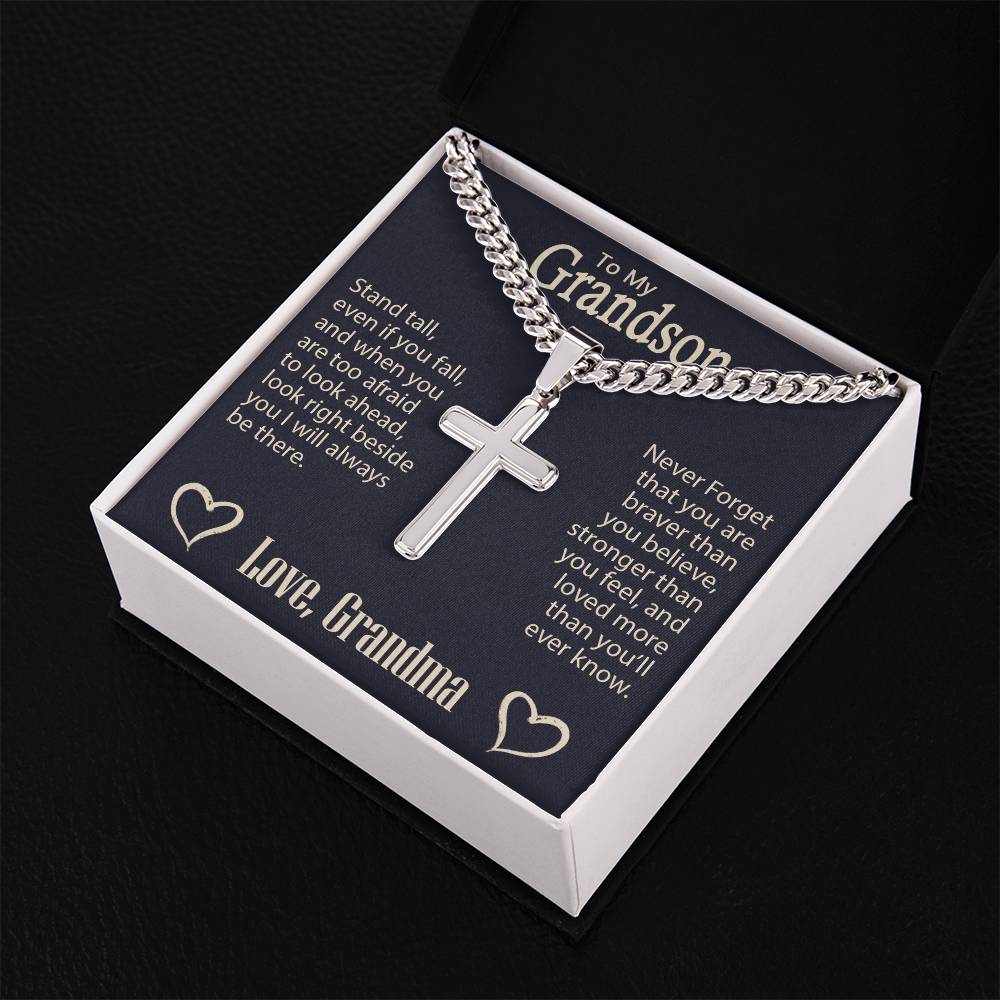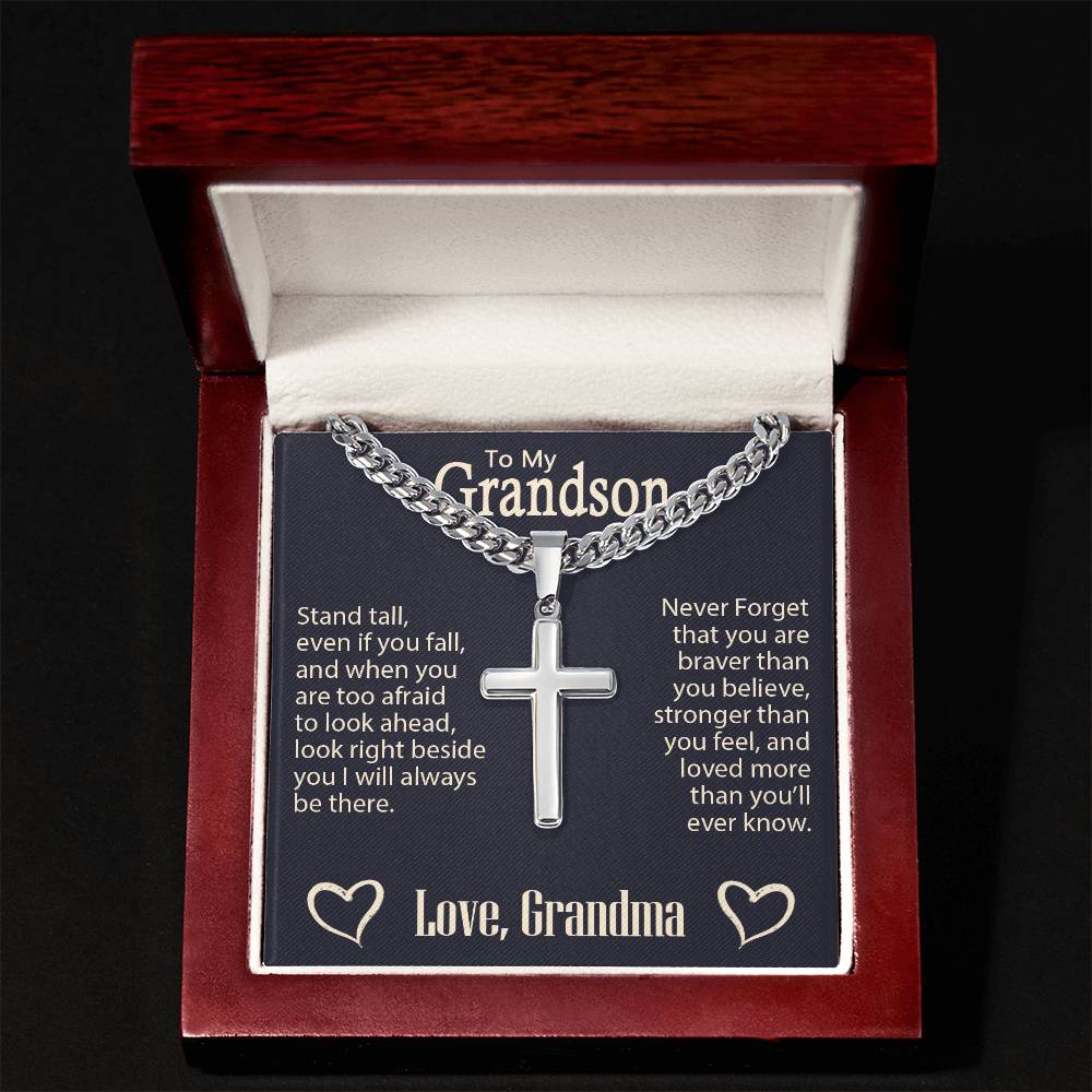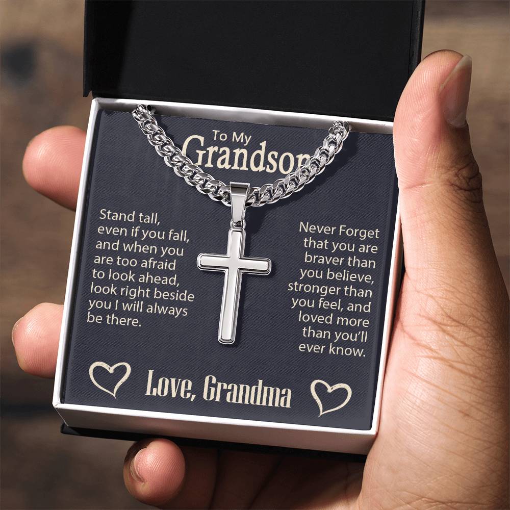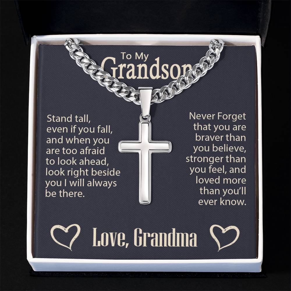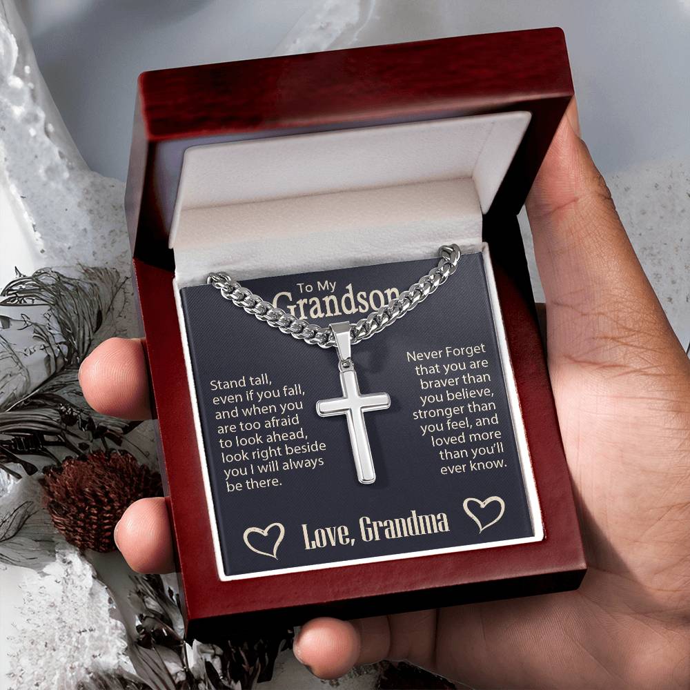 The Best Grandson Gift Idea: Personalized Engraved Cross Necklace On Cuban Link Chain To My Grandson, Gift For Him on Birthday, Graduation, Christmas, Custom Message Present For Men From Grandma & Grandpa, is the perfect gift to delight your special ones.