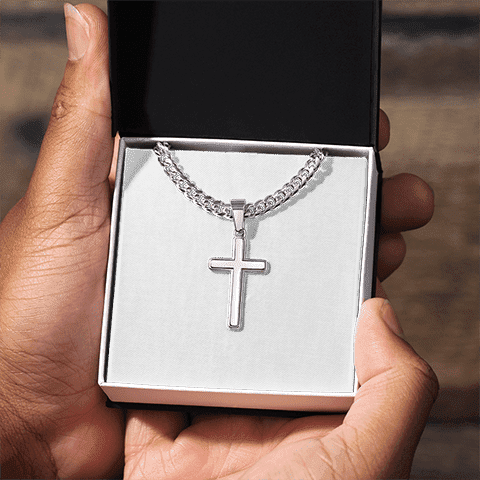 Wear your faith proudly with this Cuban Chain with Artisan Cross Necklace. Perfect for special occasions or everyday wear, this makes a wonderful gift idea for you or your loved one. Personalizing the back of the cross pendant will surely make this gift treasured for years to come!