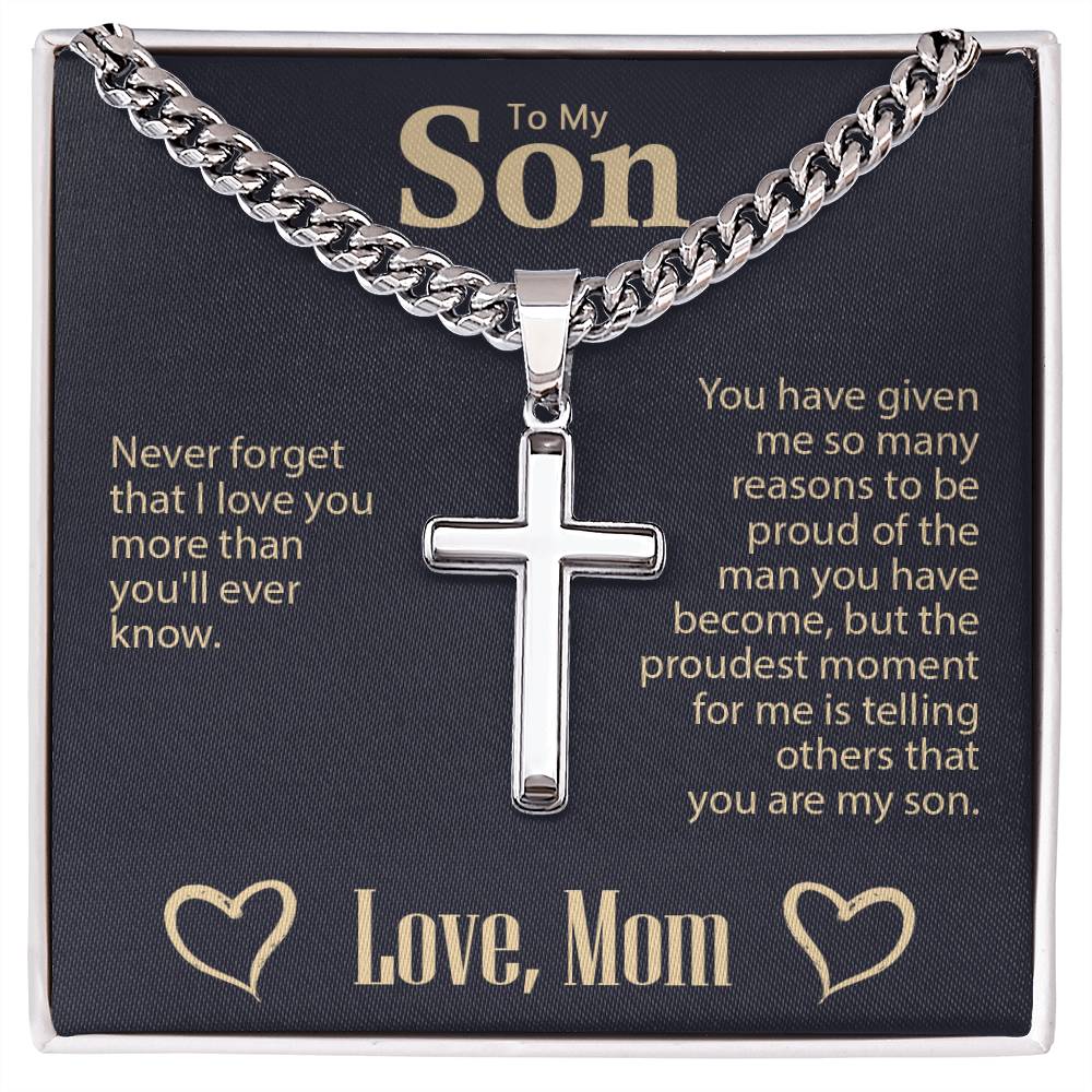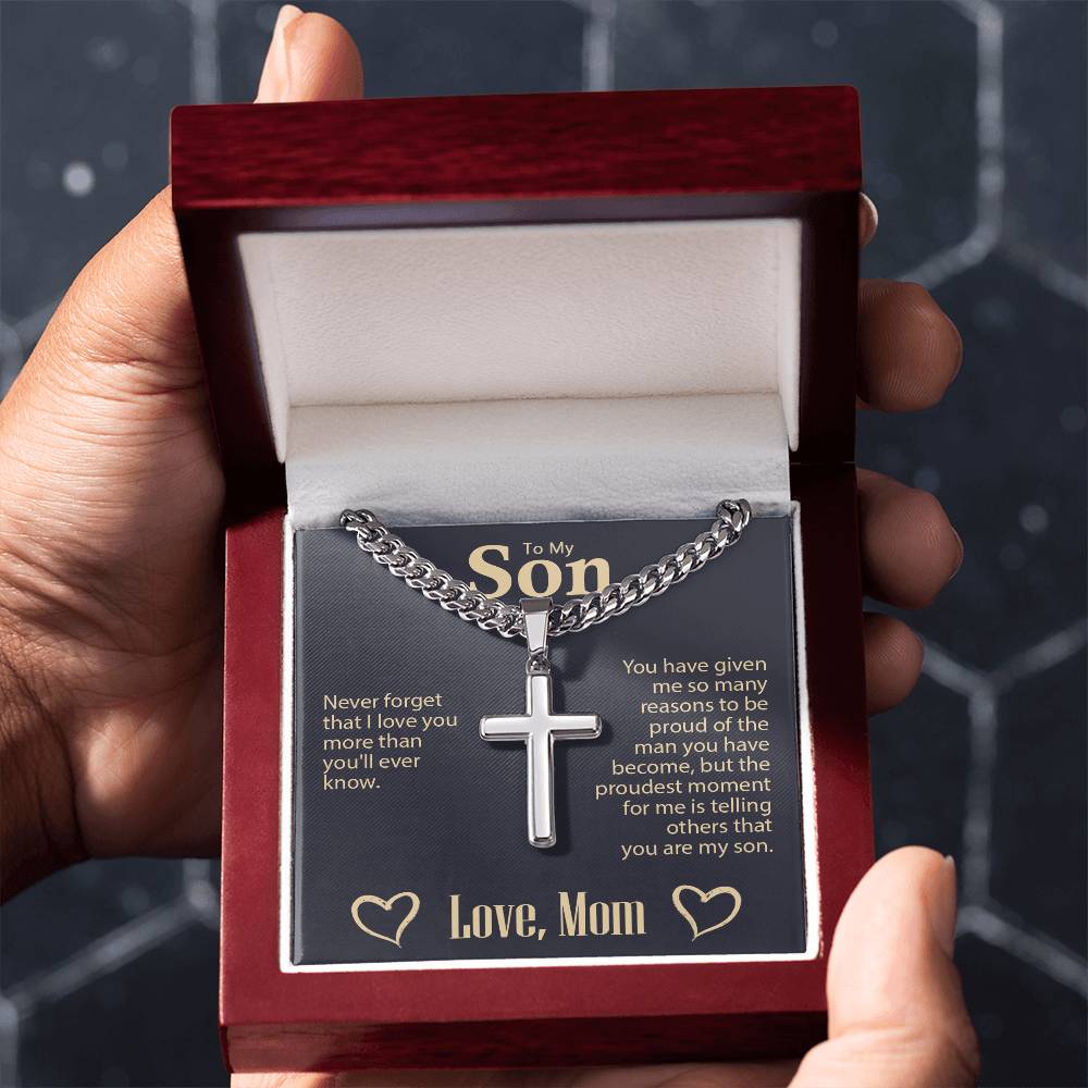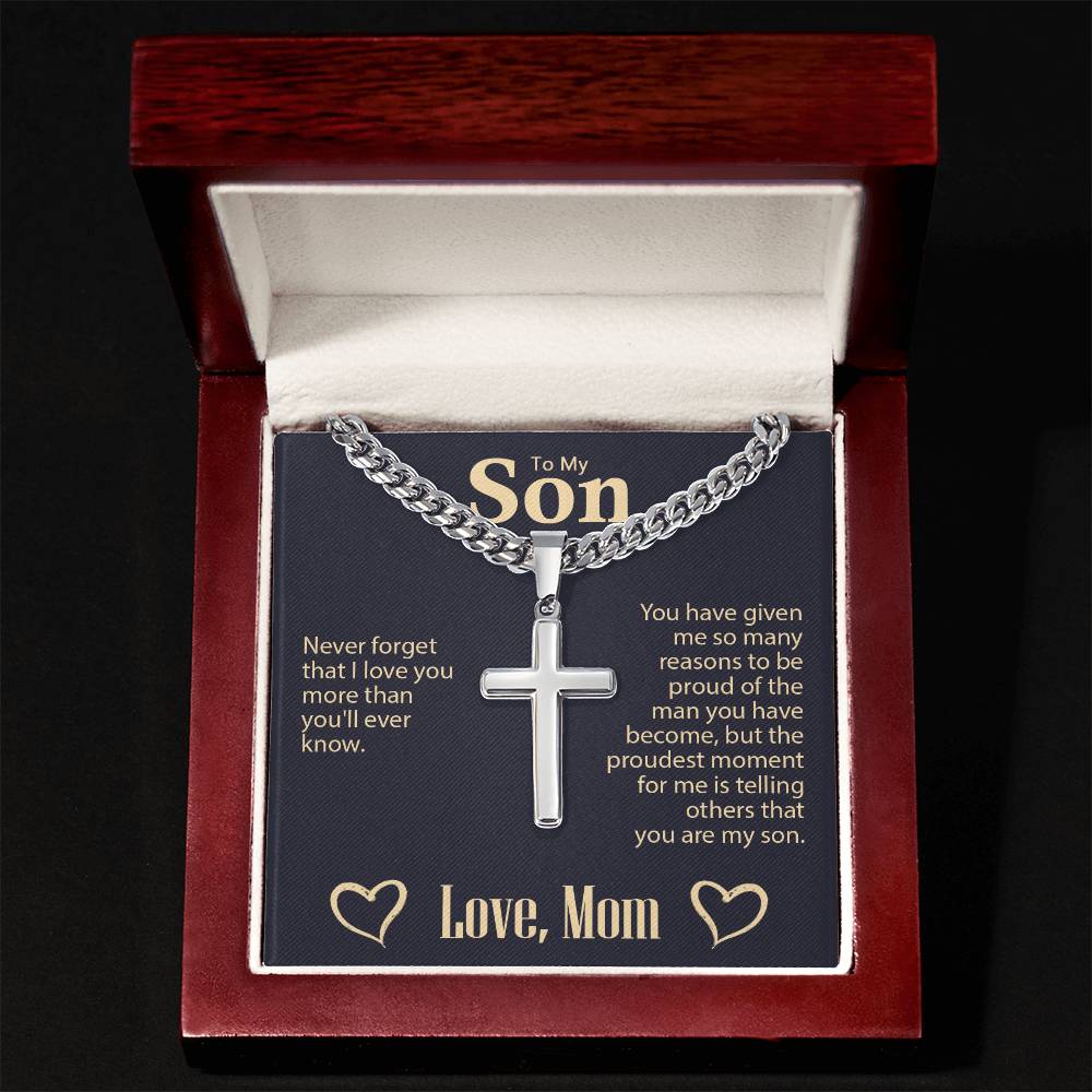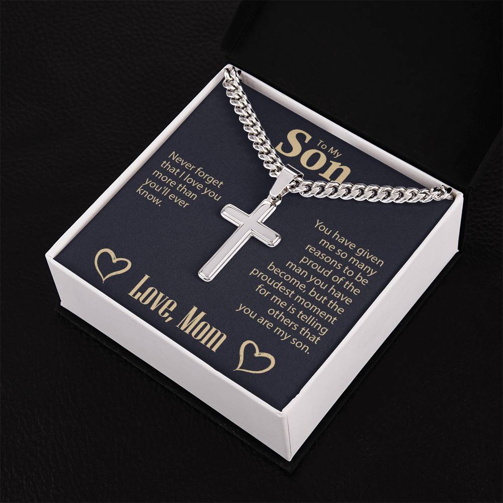 The Best Gift Idea: Personalized Engraved Cross Necklace On Cuban Link Chain To My Son, Gift For Him on his Birthday, Graduation, or Christmas, Custom Message Present For Men, is the perfect gift to delight your special ones.