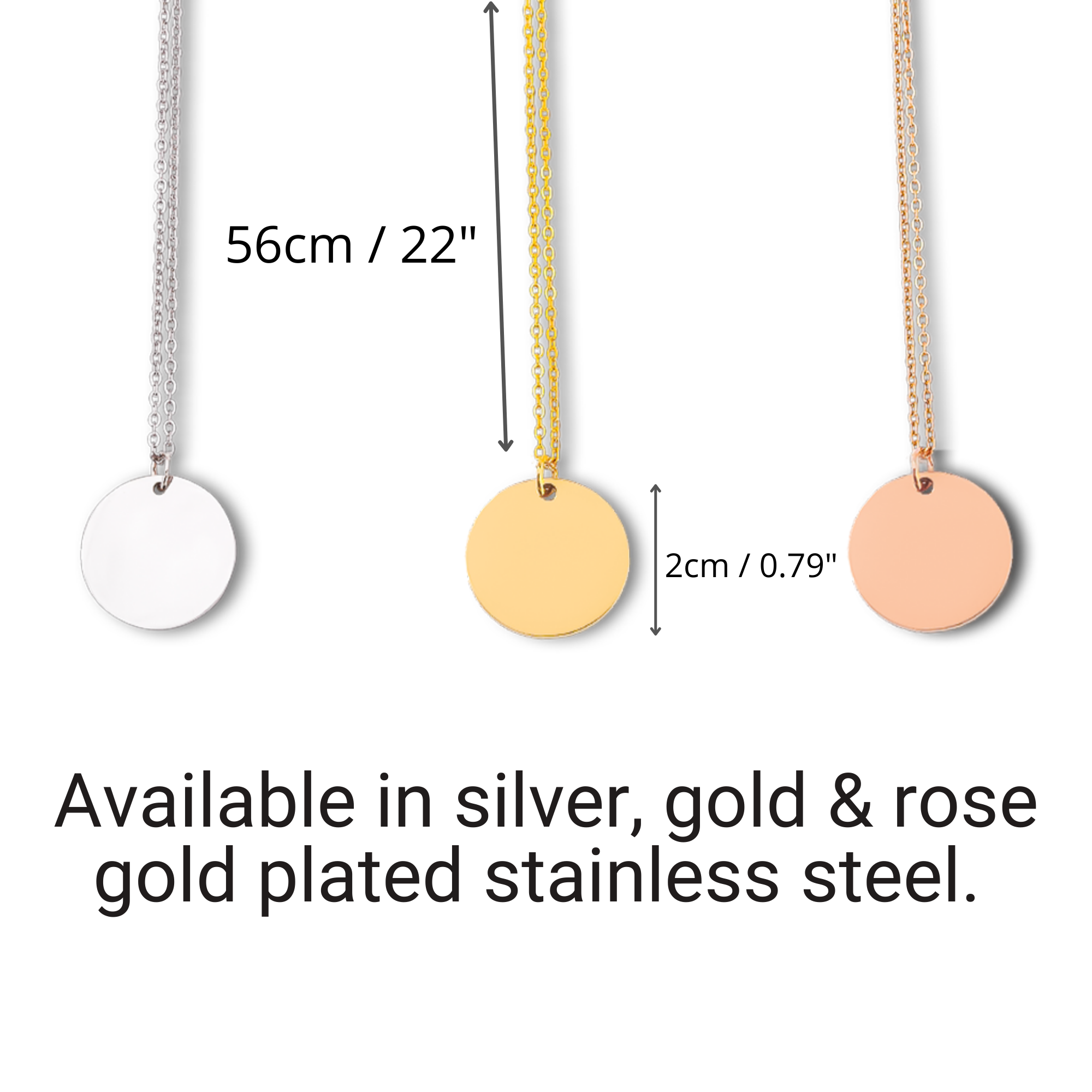 3. Add a custom message to personalize the back of the pendant (optional) (you can add any text, date, coordinates, or symbols)