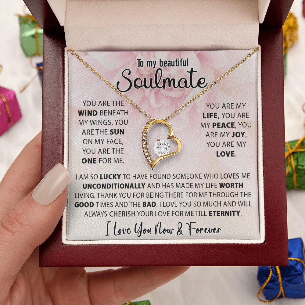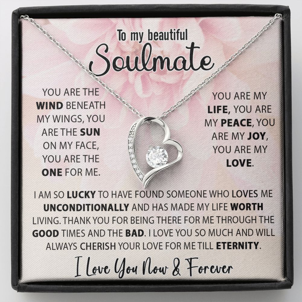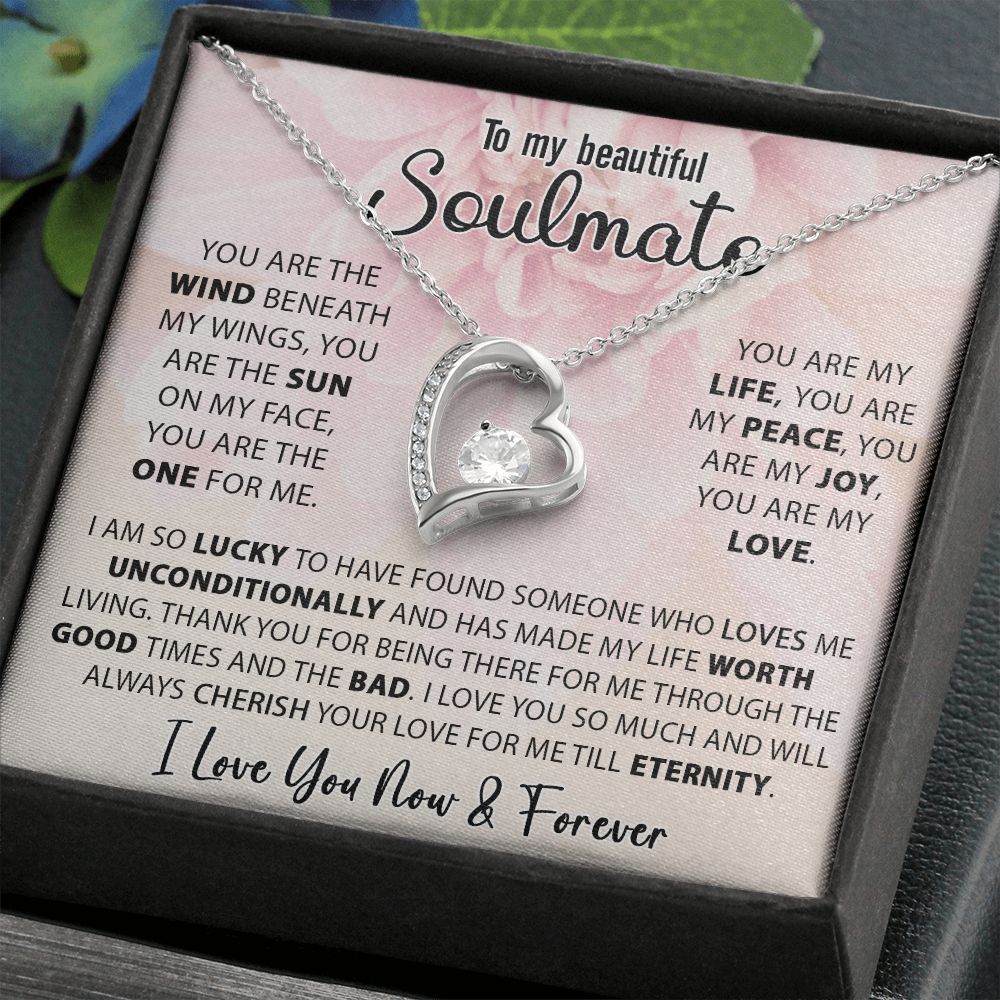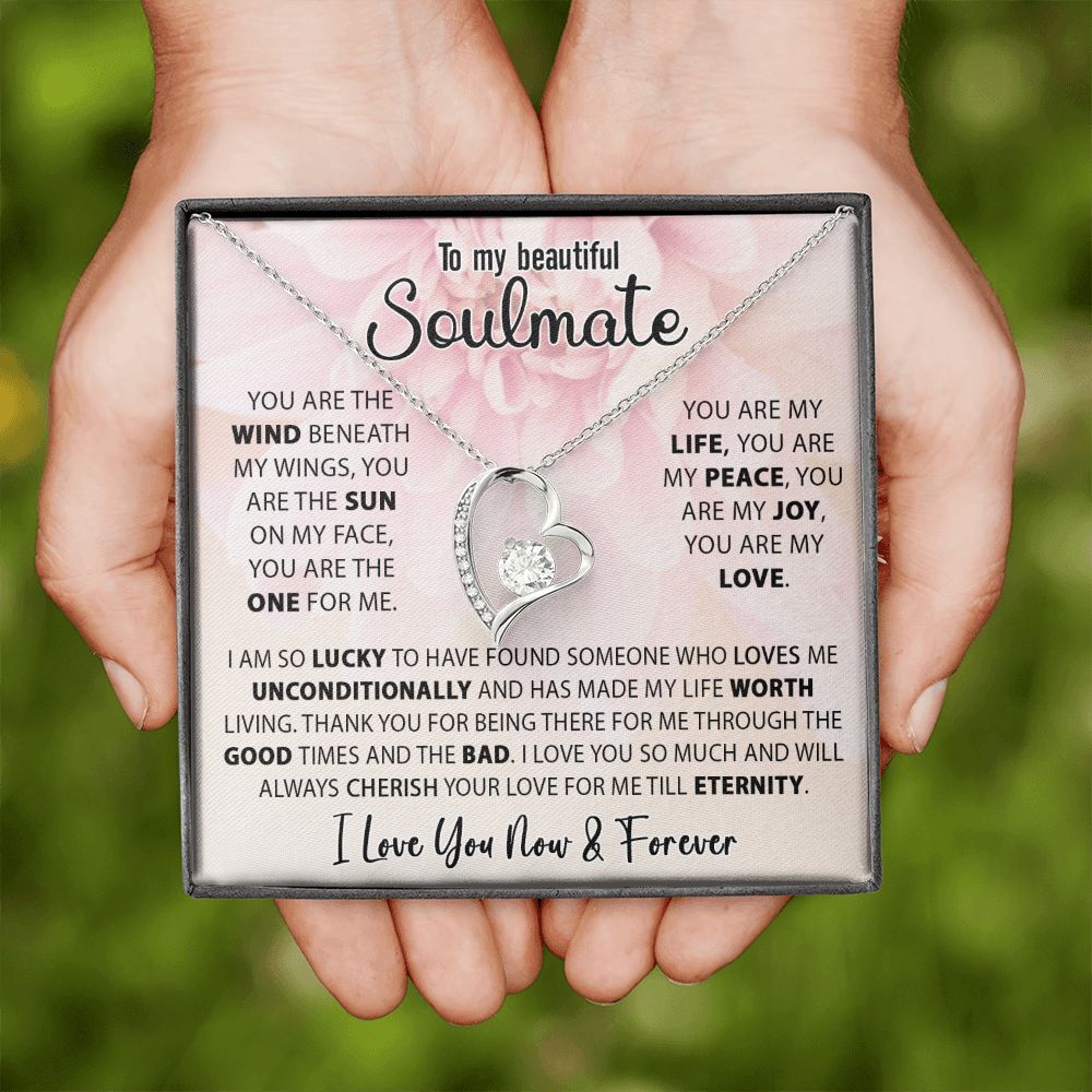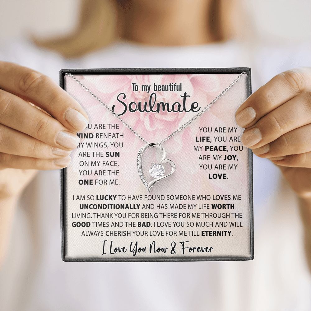 This Soulmate Necklace is the perfect gift to show your love to your wife or girlfriend of your undying commitment, engraved with your heartfelt message of love on the included message card.