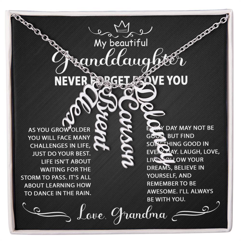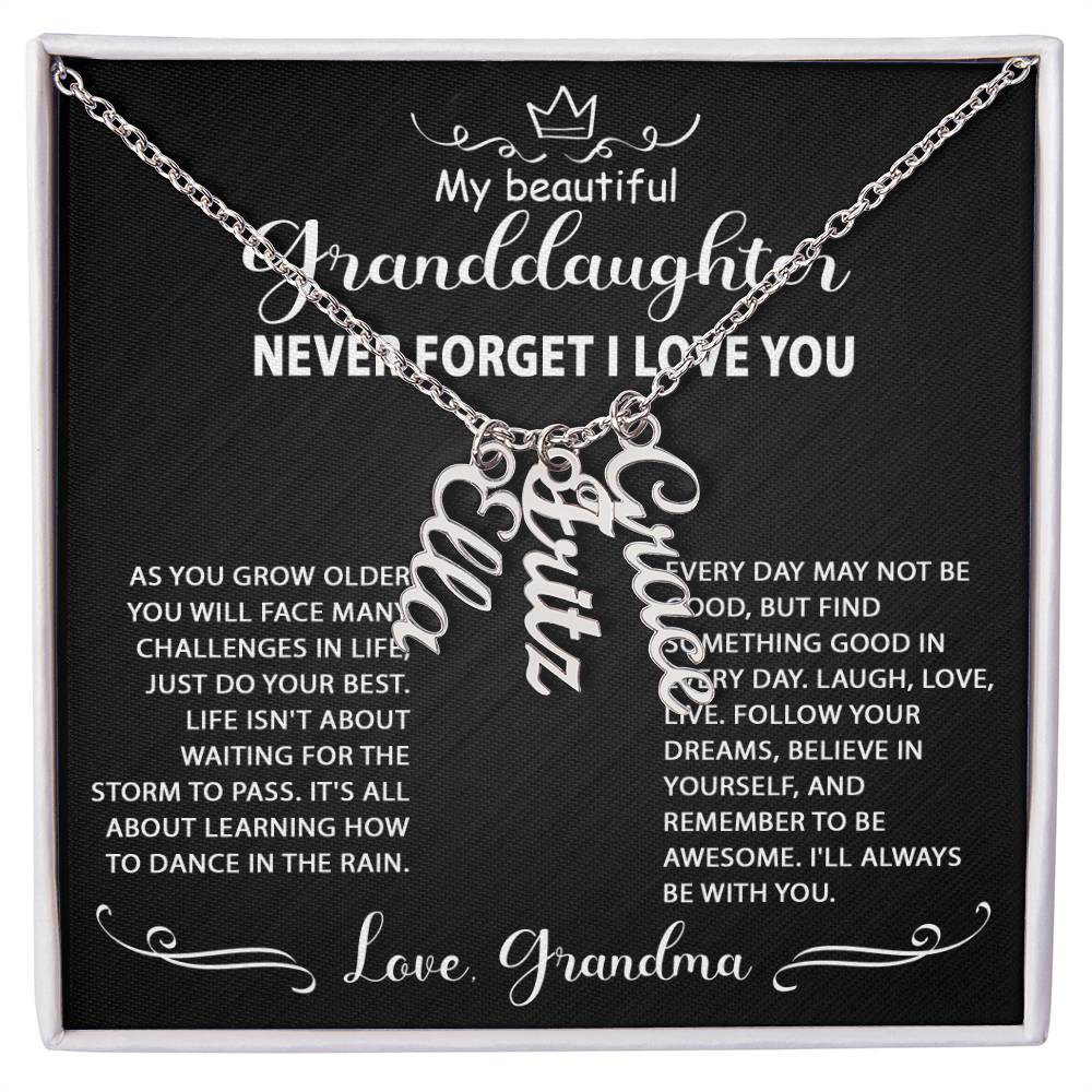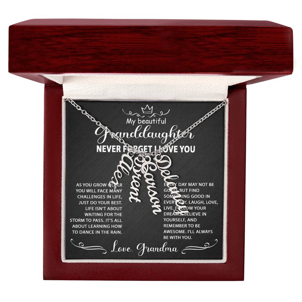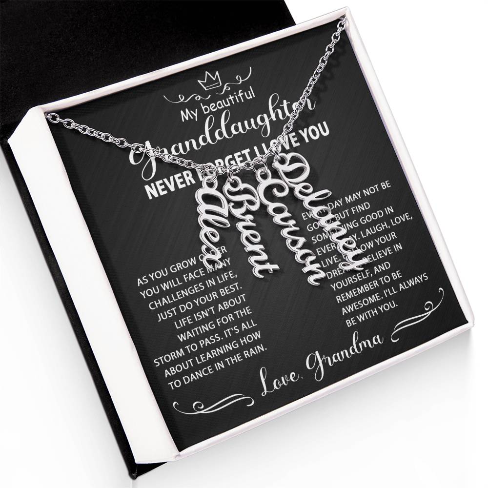Best Gift Idea for my granddaughter, personalized multi-vertical name necklace. Perfect gift for her on graduation, birthday, wedding, Christmas, and wear on any occasion.