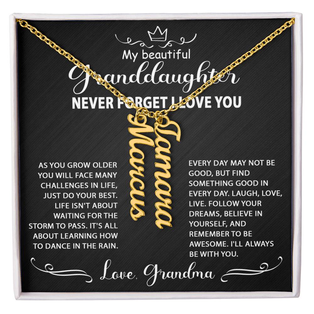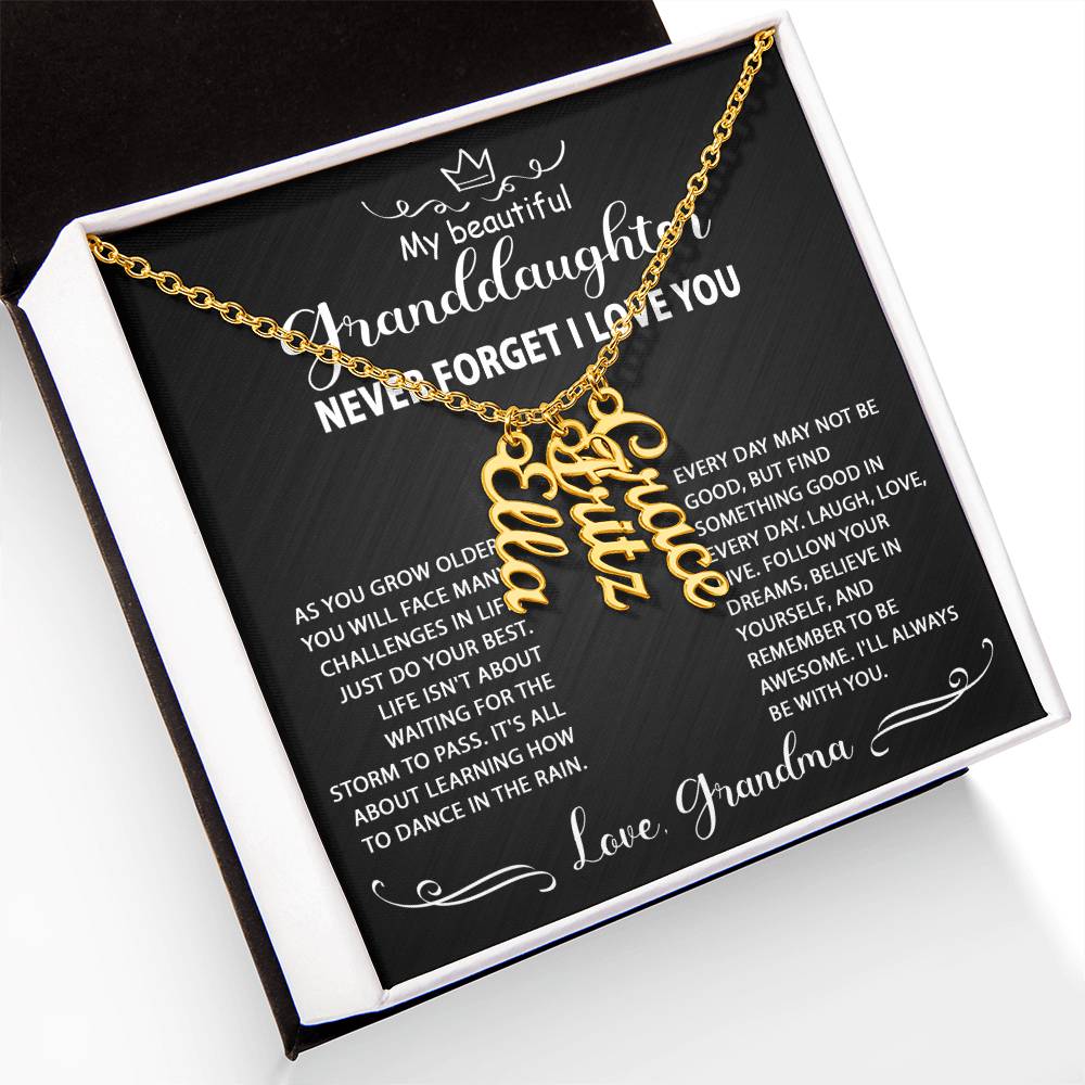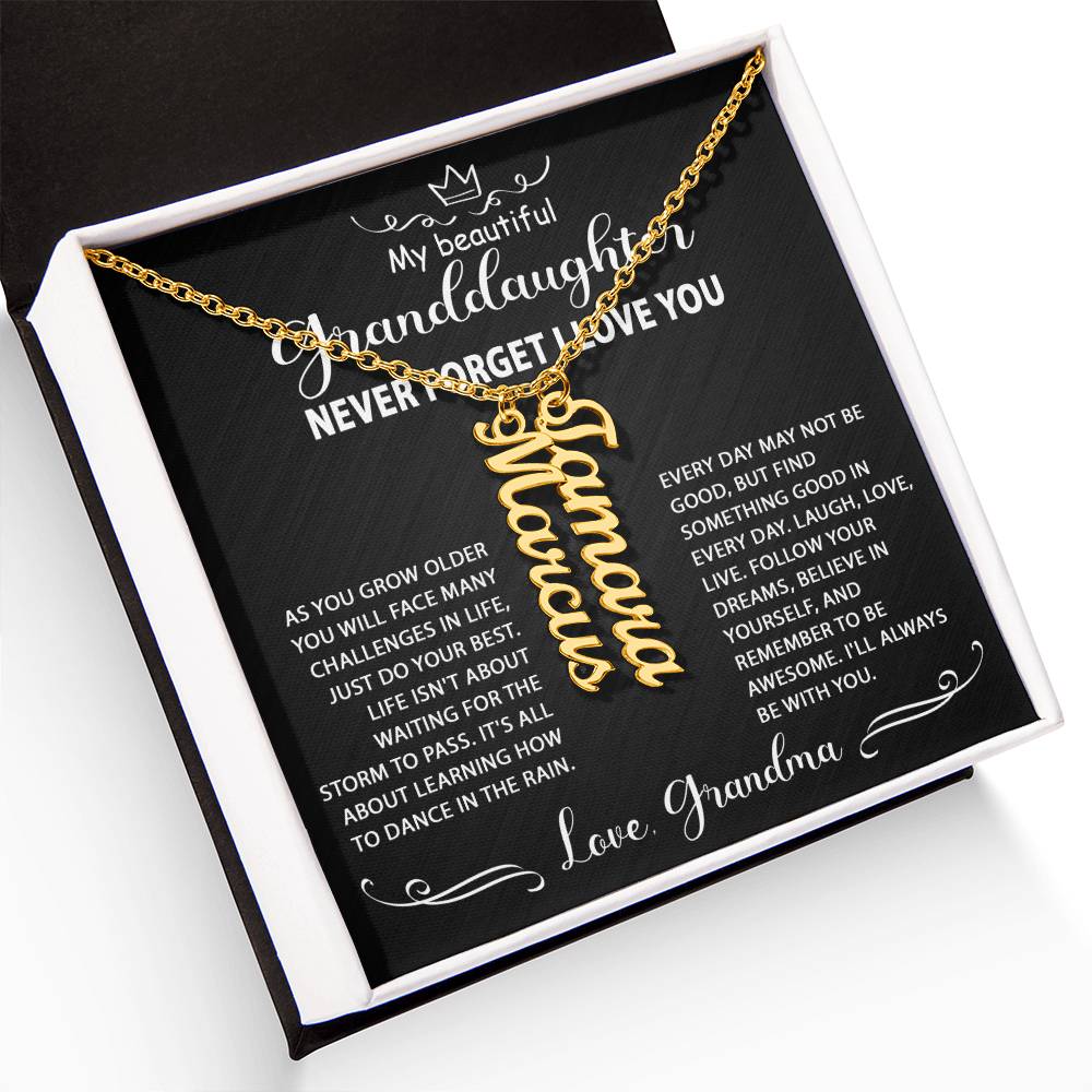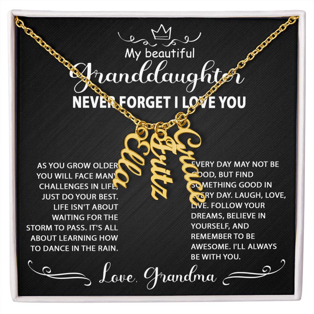 Best Gift Idea for my granddaughter, personalized multi-vertical name necklace. Perfect gift for her on graduation, birthday, wedding, Christmas, and wear on any occasion.