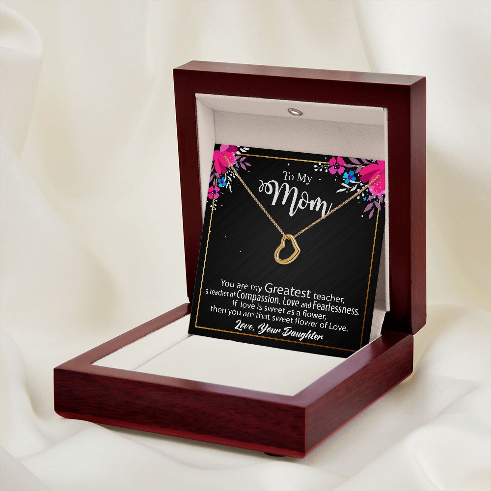 Imagine her delight when she sees this beautiful Delicate Heart Necklace, lovingly crafted in sterling silver and dipped in 14k white gold or 18k yellow gold for added luxury. This piece is pure elegance wrapped up in timeless simplicity. Trends may come and go, but this piece will last a lifetime with its classic subtle beauty.