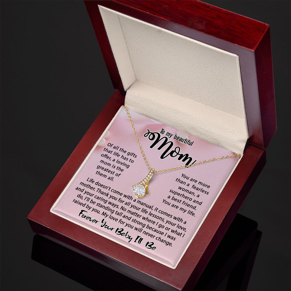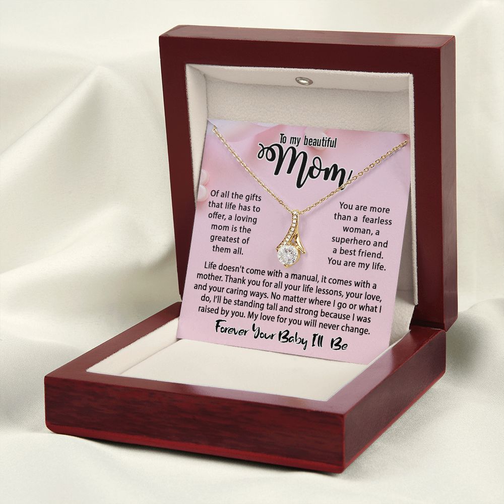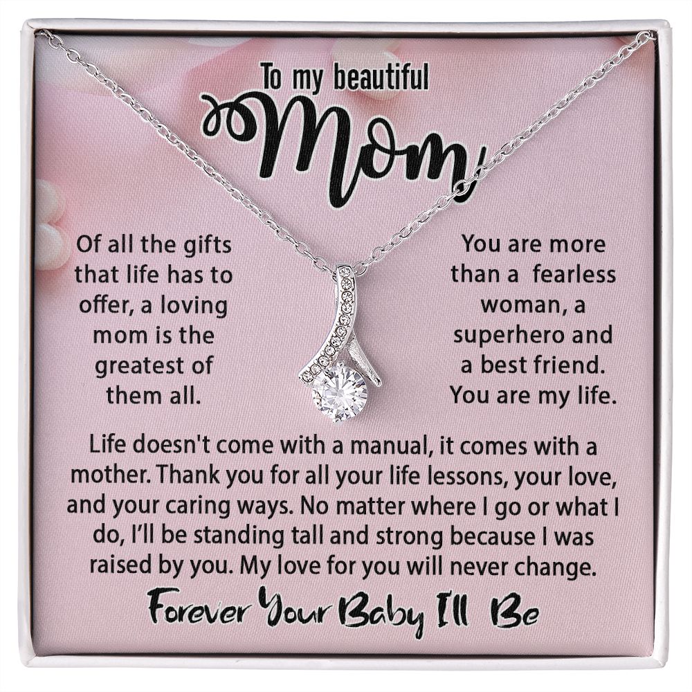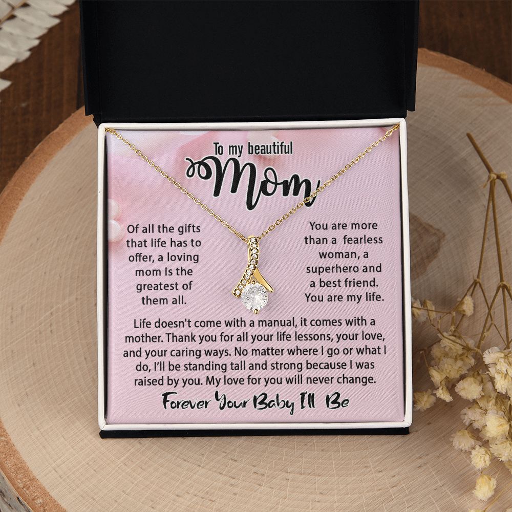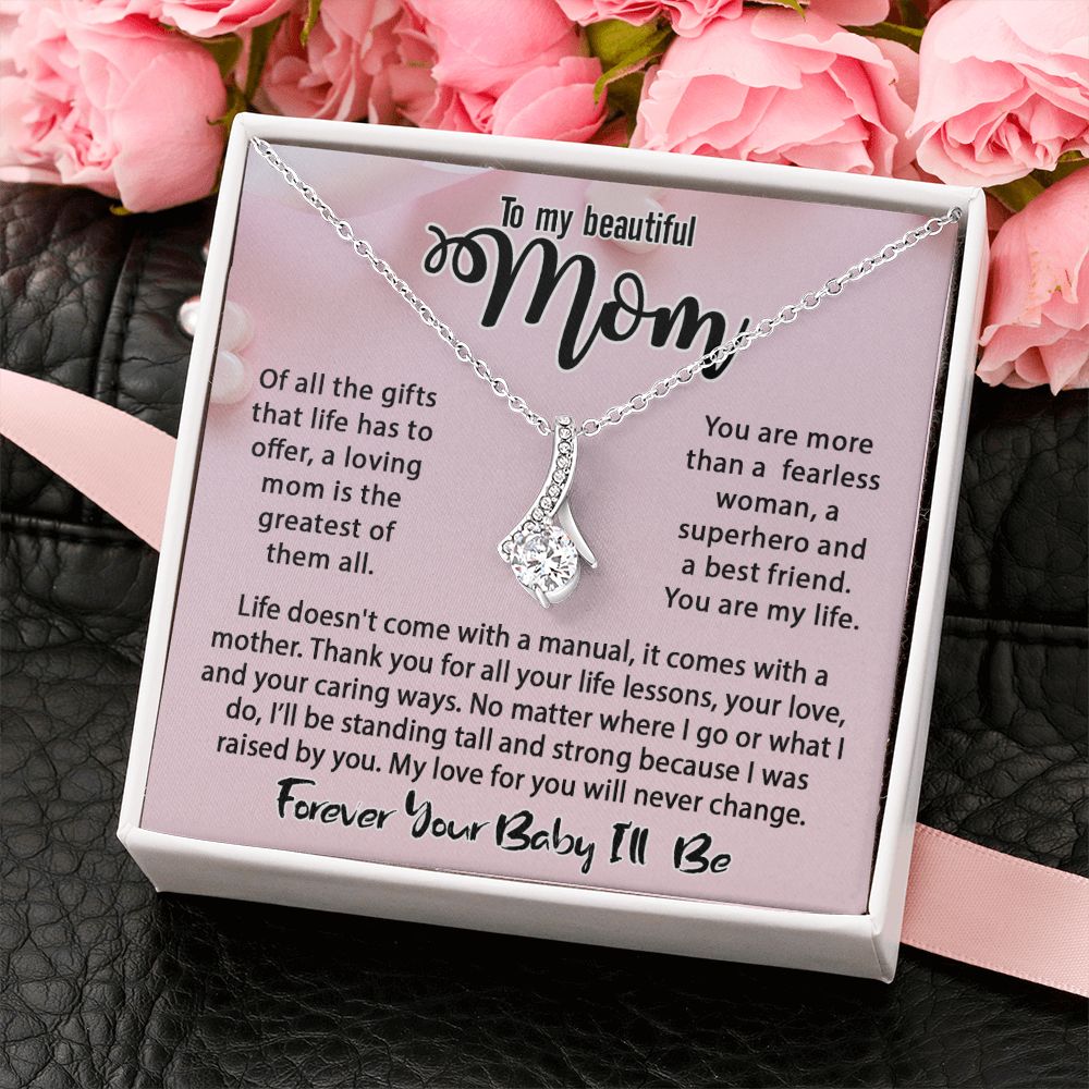 To My Mom Necklace, Mom Birthday Gift From Daughter & Son, Mothers Day Ideas Love Quote Message Card Alluring Beauty Pendant Jewelry For Mother #e234