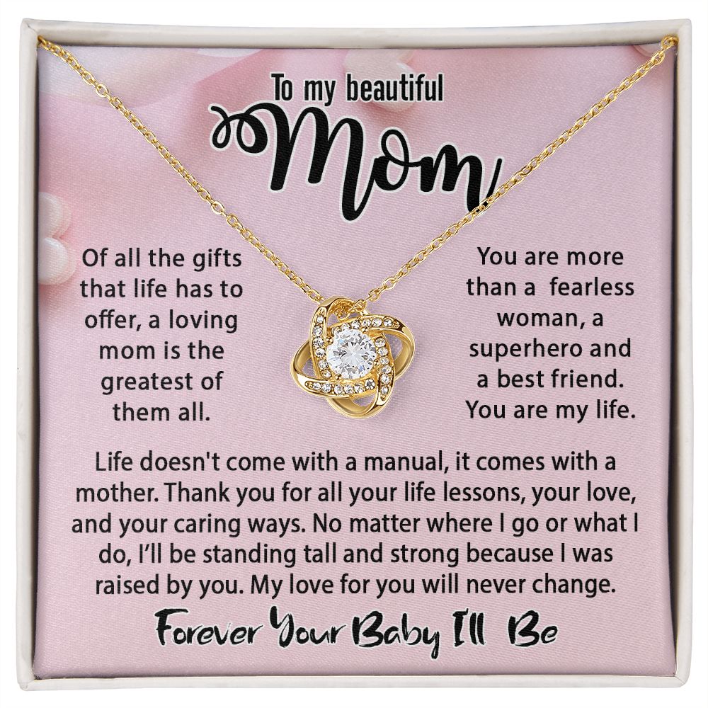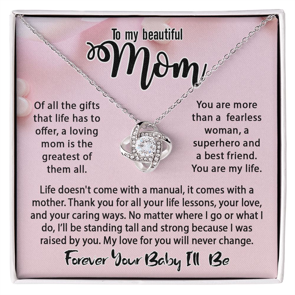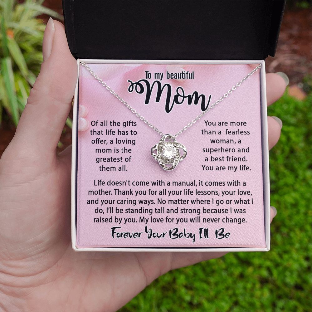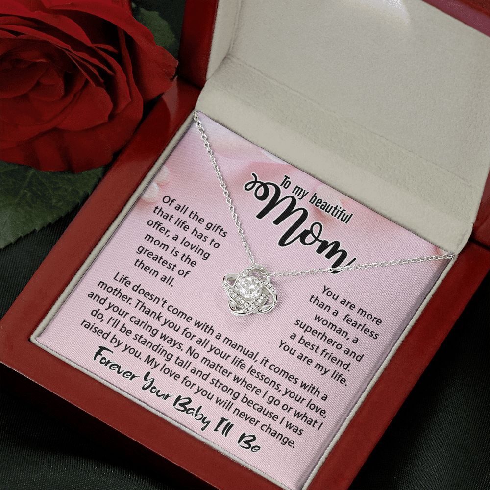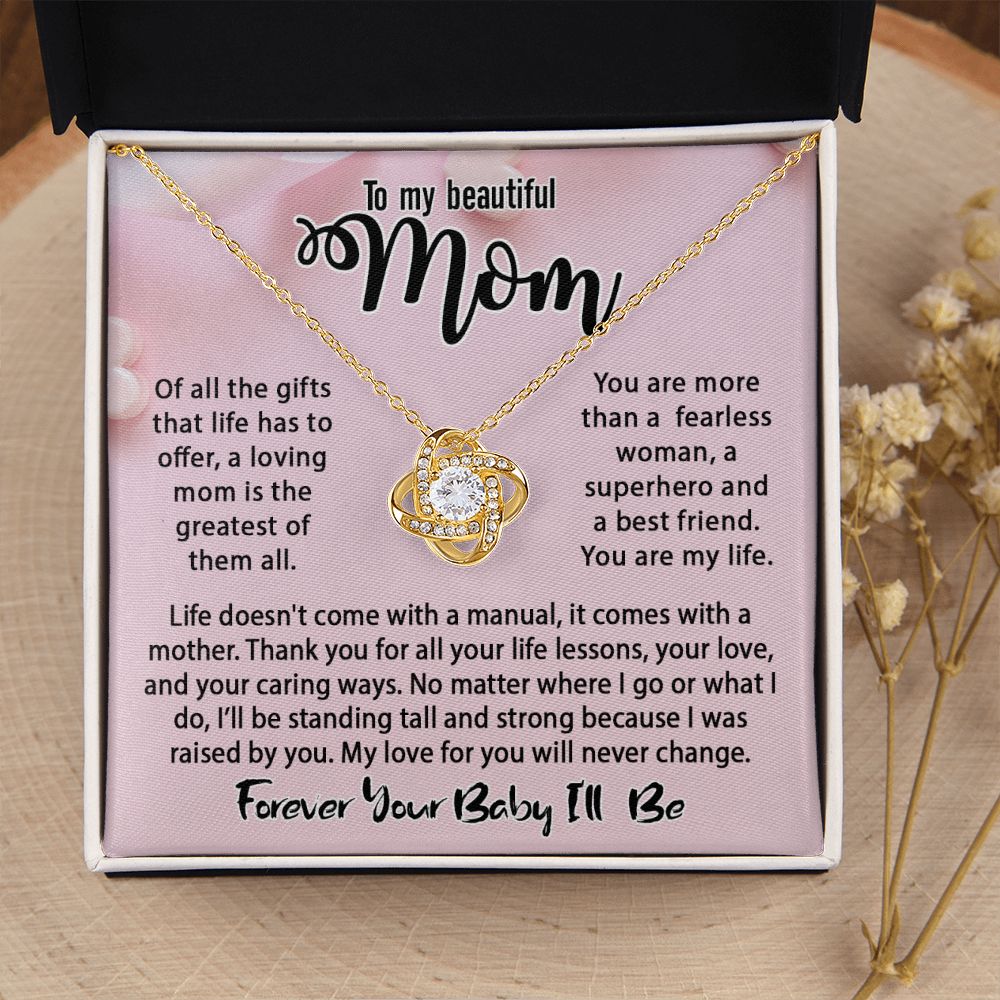 To My Mom Necklace, Mom Birthday Gift From Daughter & Son, Mother’s Day Ideas Love Quote Message Card Love Knot Jewelry For Her #e233