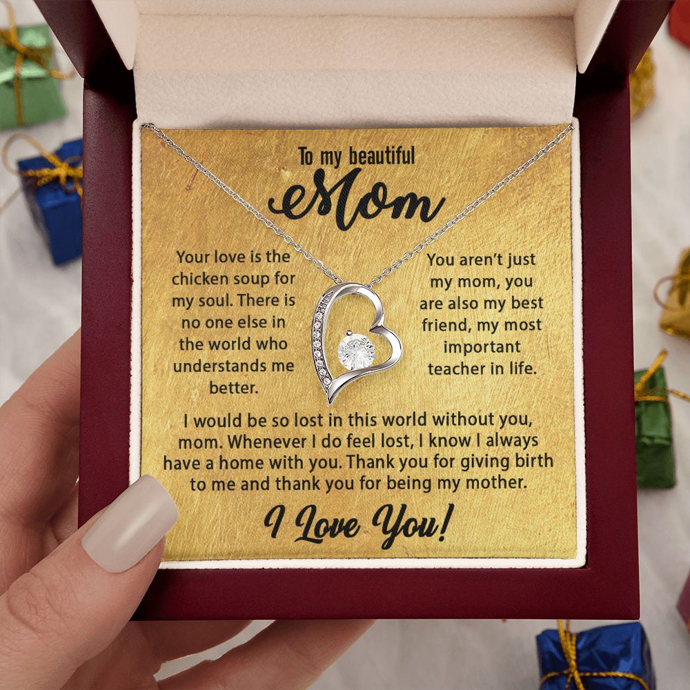 The dazzling Forever Love Necklace is sure to make her heart melt! This necklace features a stunning 6.5mm CZ crystal surrounded by a polished heart pendant embellished with smaller crystals to add extra sparkle and shine. Beautifully crafted with either a white gold or yellow gold finish, be sure to give her a classic gift she can enjoy everyday.