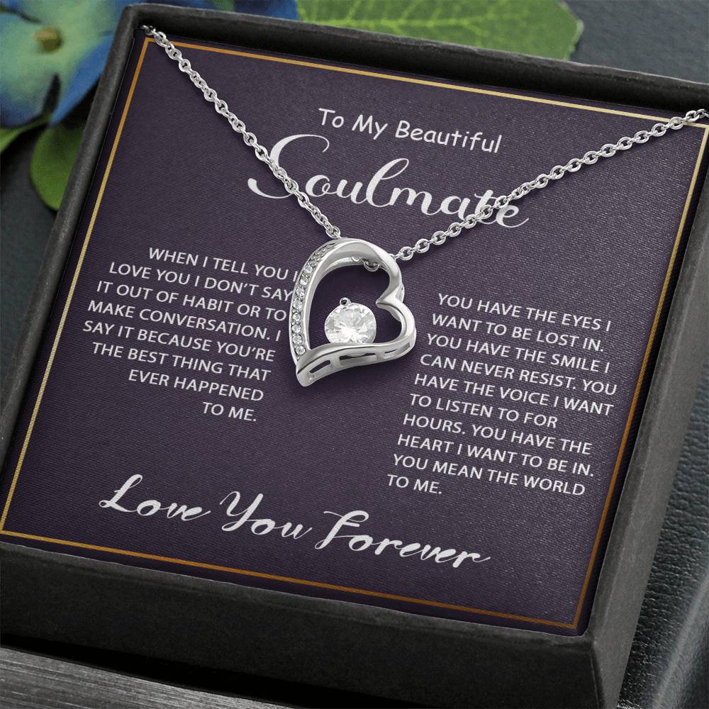 Best Gift Ideas: Soulmate Pendant Necklace Gift For Wife Girlfriend on Valentine’s Day, Birthday, Anniversary, or any special occasion. Comes with an inspiring love quote message card. Show your love with this best jewelry gift for her.